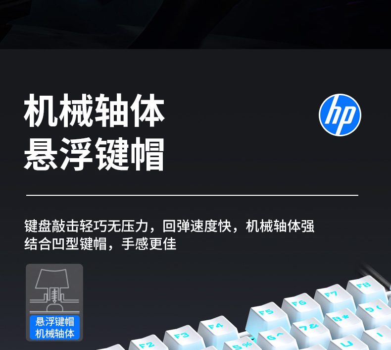 商品名称:HP/惠普GK100机械键盘鼠标套装游戏电竞笔记本台式电脑有线办公键鼠青轴黑轴茶轴红轴外接104键专用lol外设