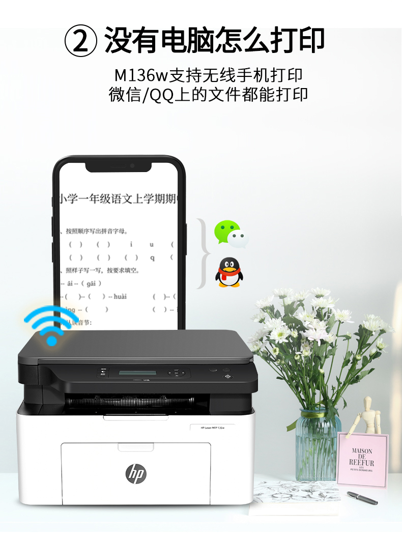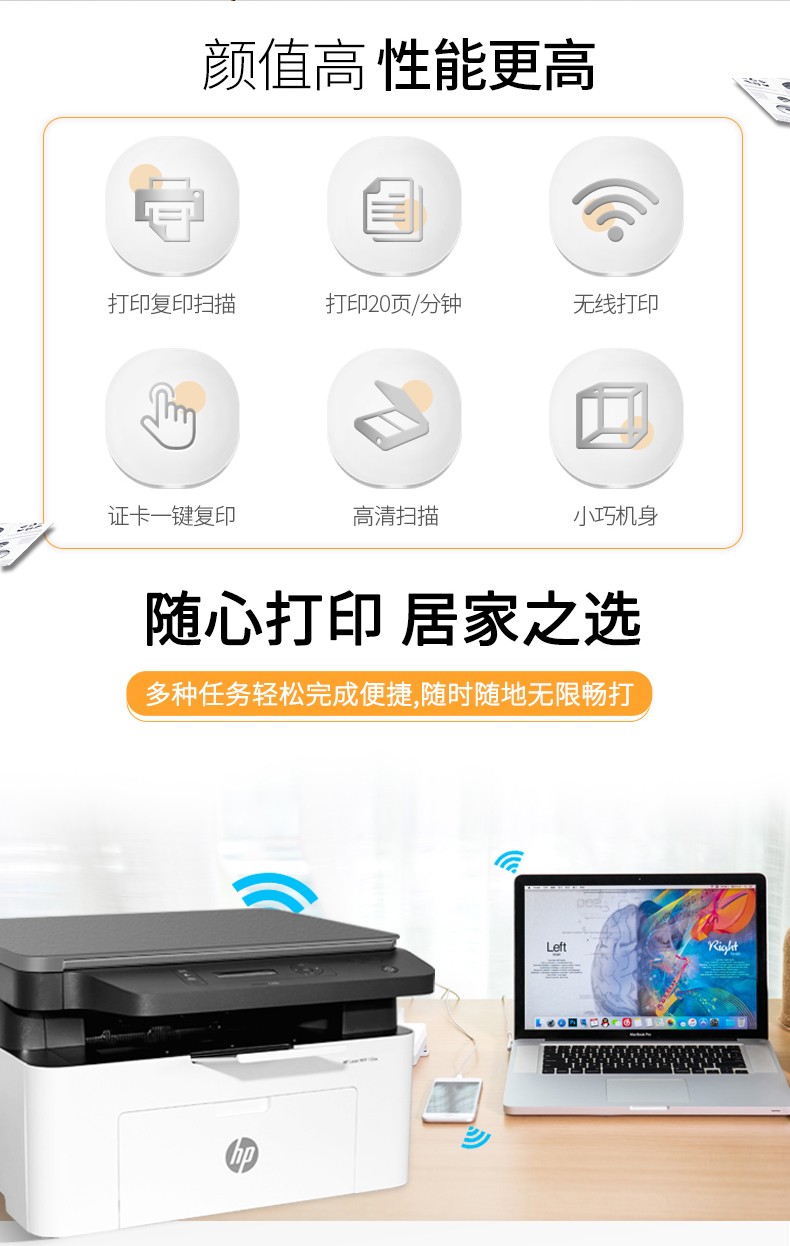 商品名称:HP惠普M135W黑白激光打印机无线M136w复印扫描多功能一体机A4小型