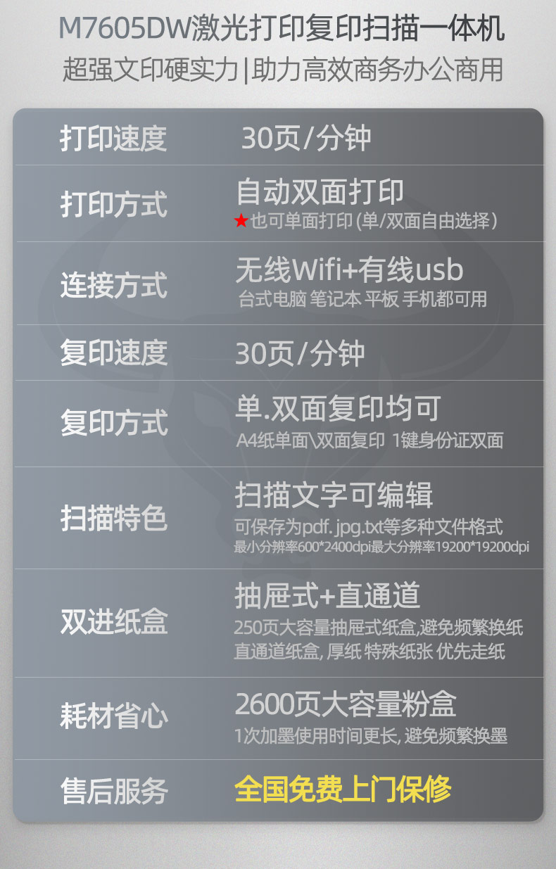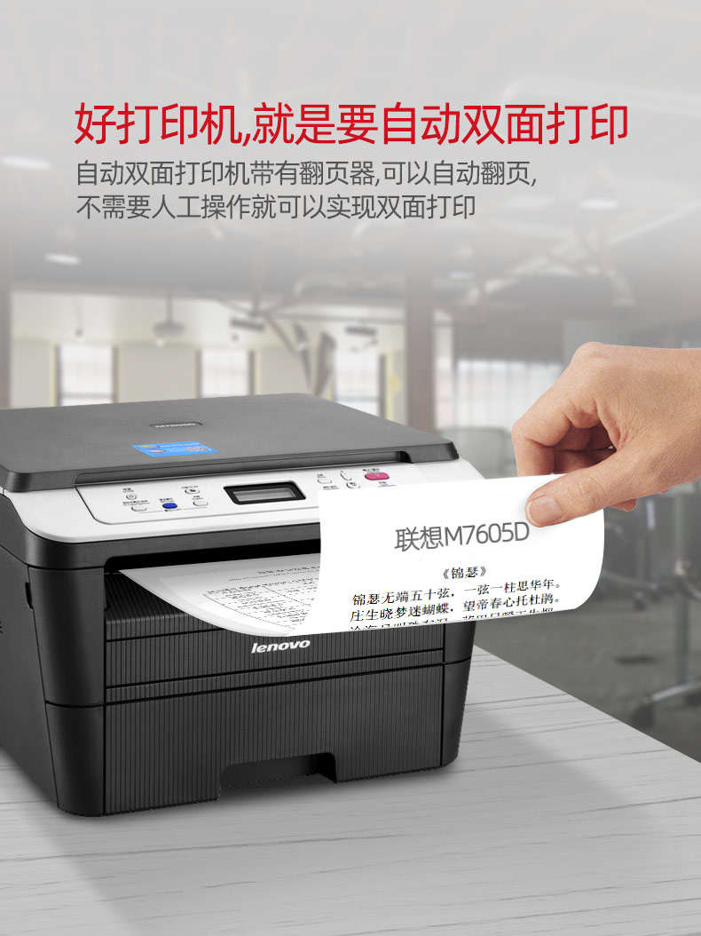 商品名称:联想M7605D M7605DW自动双面激光打印机复印一体机办公用扫描无线黑白多功能商用商务快速复印机办公室M101DW