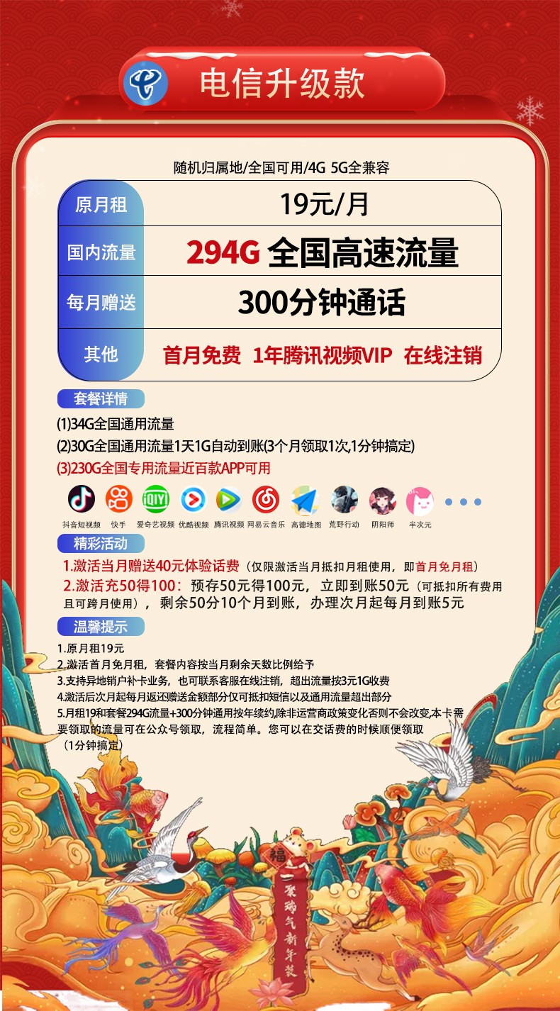 电信纯流量上网卡4g5g全国通用0月租电话卡不限速无线流量手机卡
