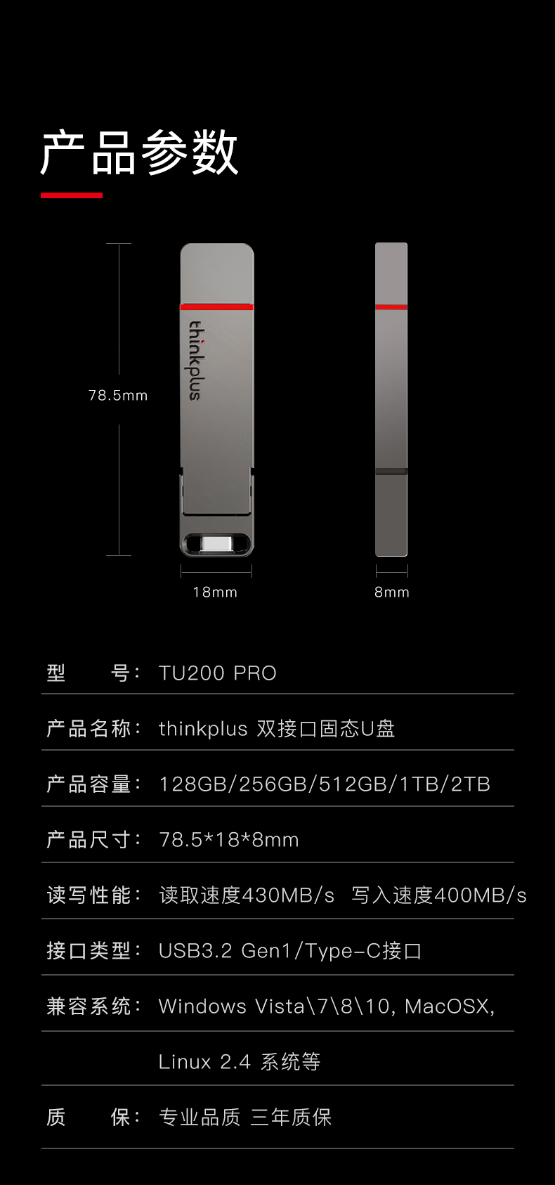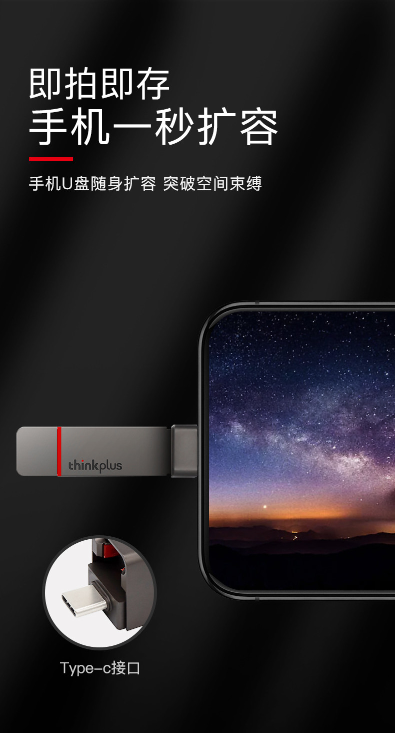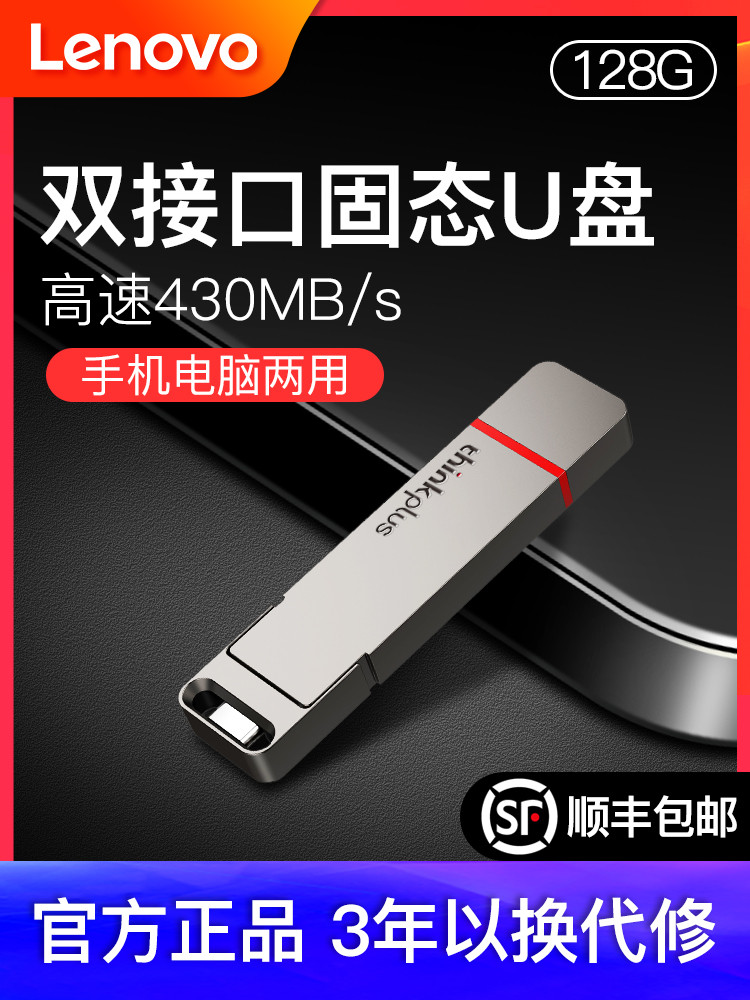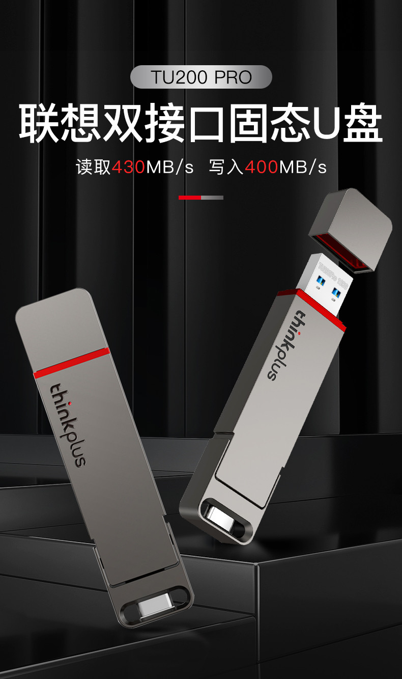 商品名称:联想typec固态u盘128g大容量手机电脑两用优盘双接口高速usb3.2正品128gu盘定制移动闪存盘商务金属tu200pro