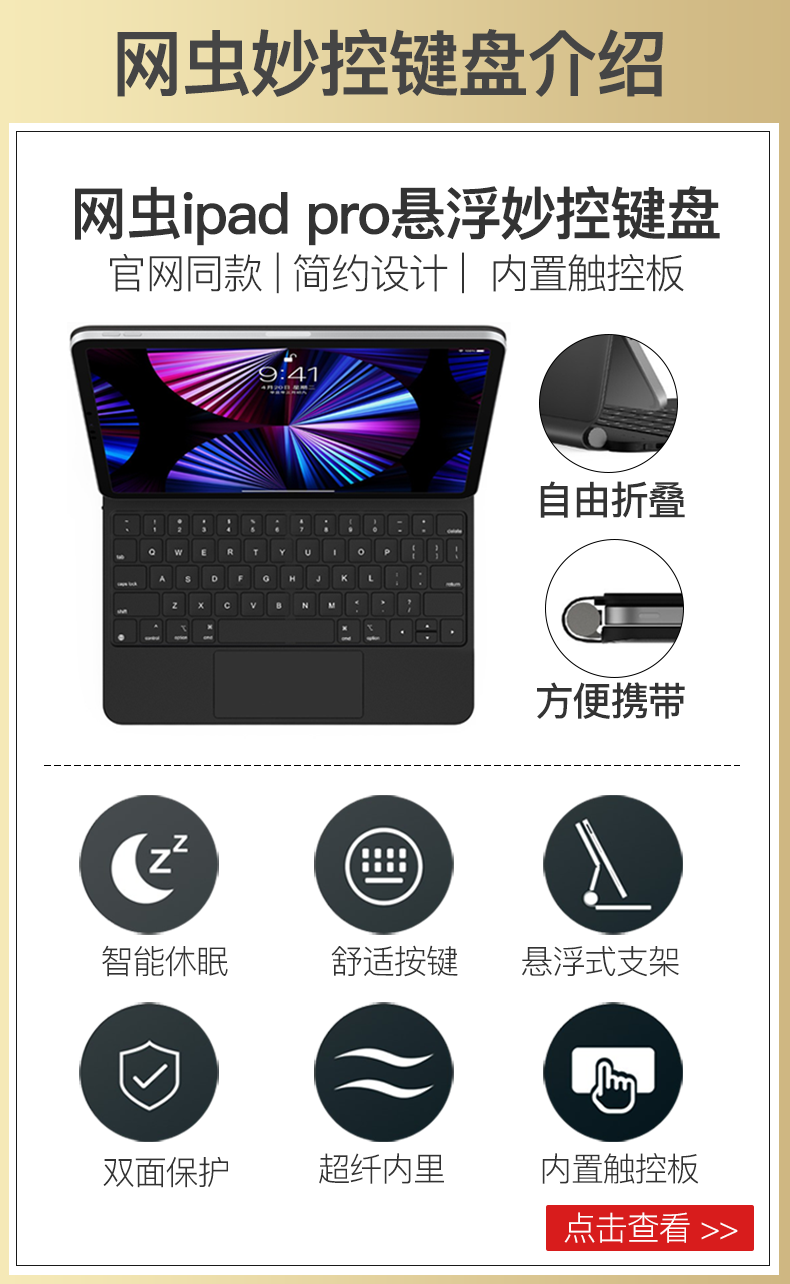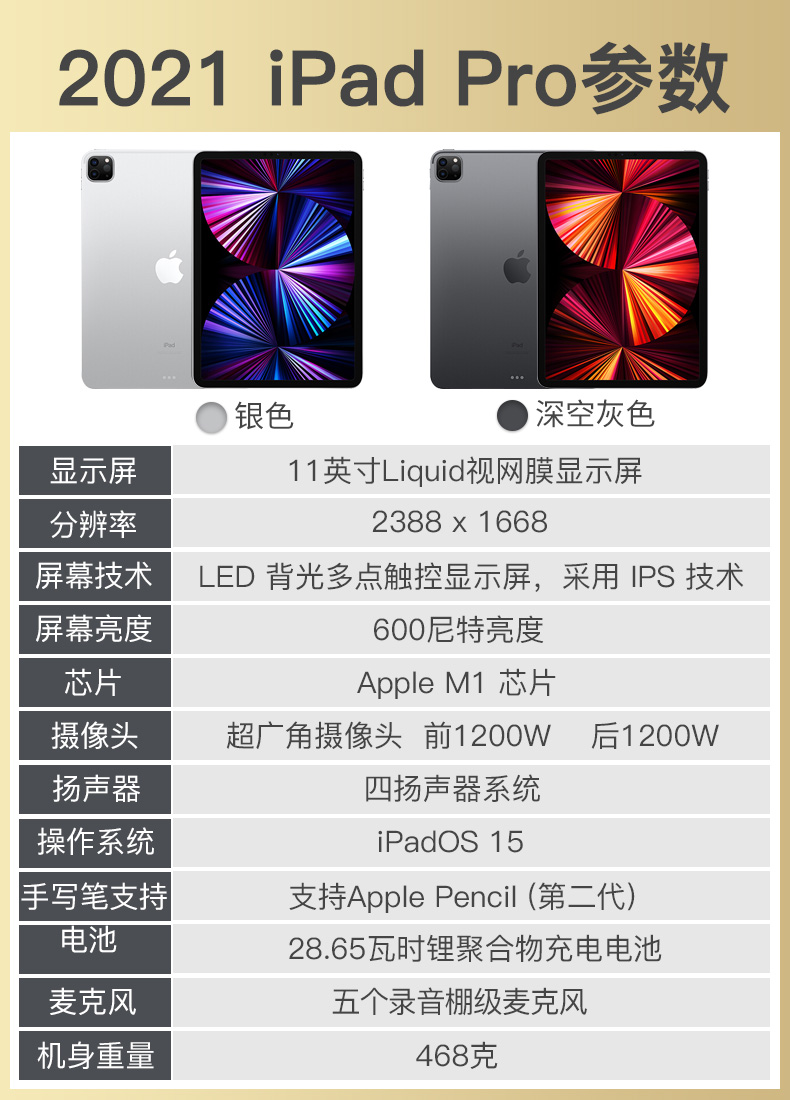 商品名称:Apple/苹果iPad Pro11英寸2021款苹果平板电脑全面屏M1芯片妙控键盘官方旗舰办公电脑