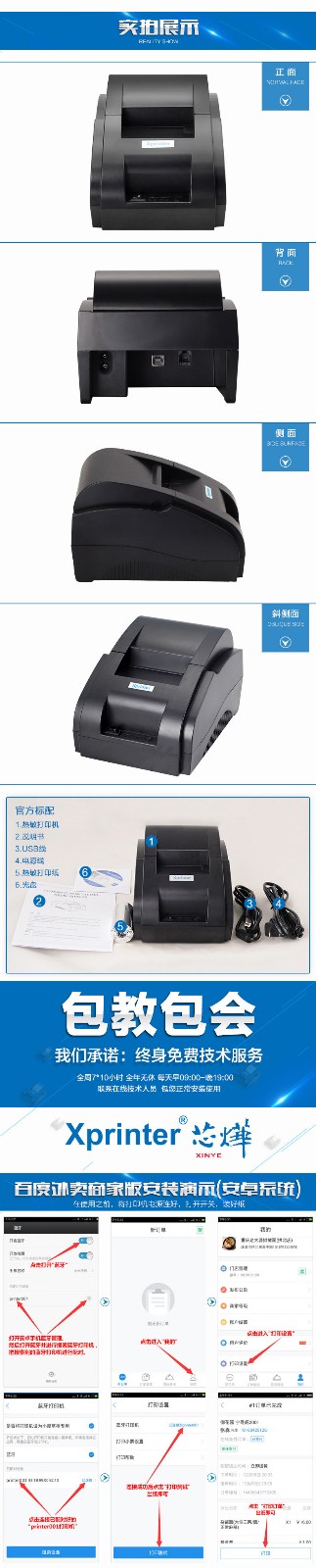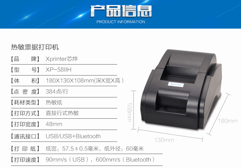商品名称:芯烨XP-58IIH热敏打印机58mm票据美团饿了么外卖订单蓝牙全自动接单wifi打单机收银厨房小票机餐饮出单打印机