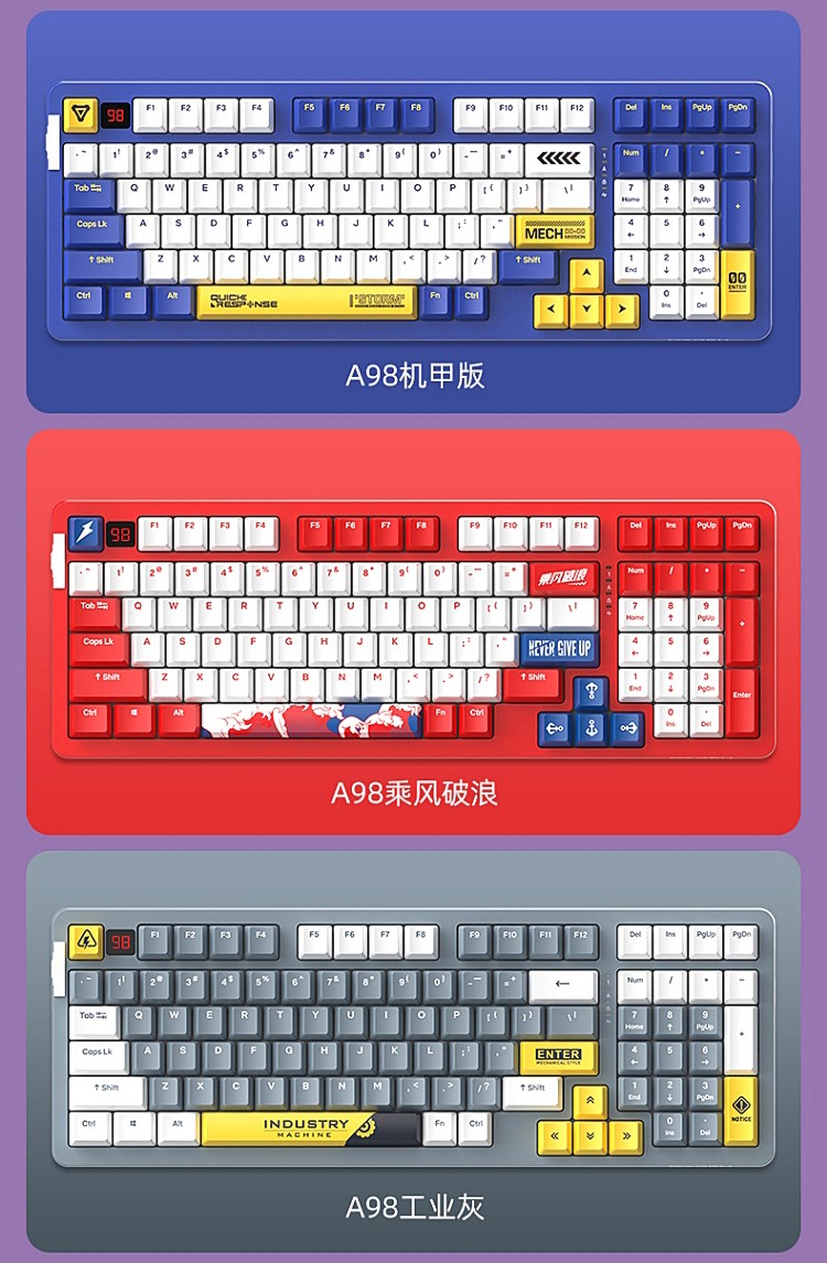 达尔优A98机械键盘Gasket结构无线2.4G蓝牙有线三模客制化热插拔轴V3天空轴静电容电竞游戏PBT键帽