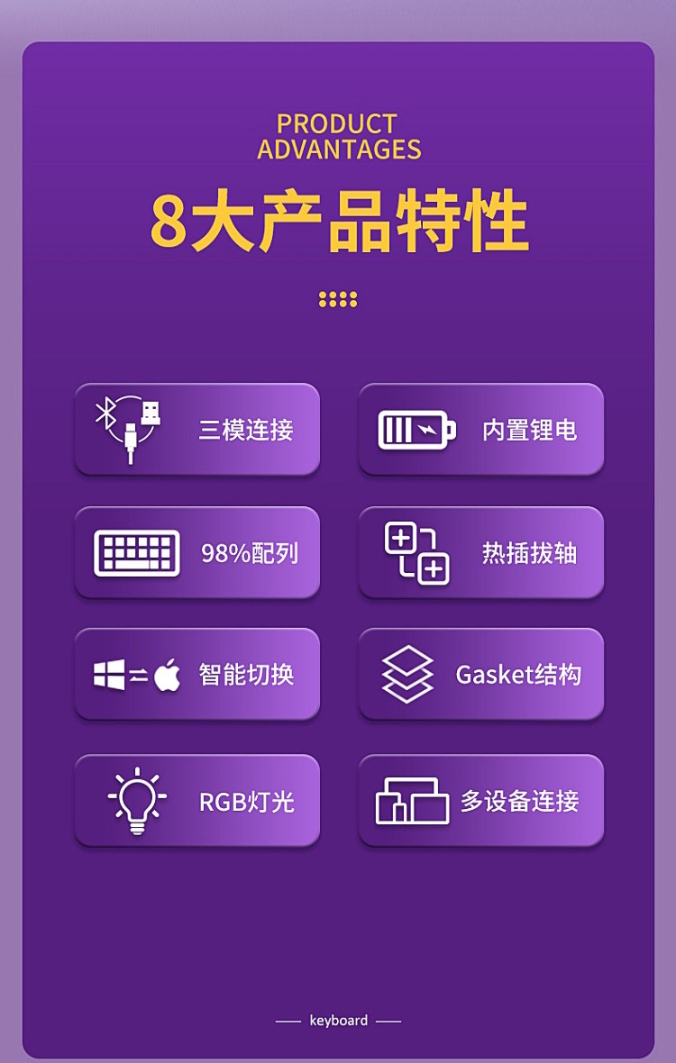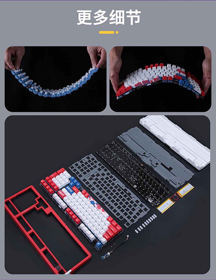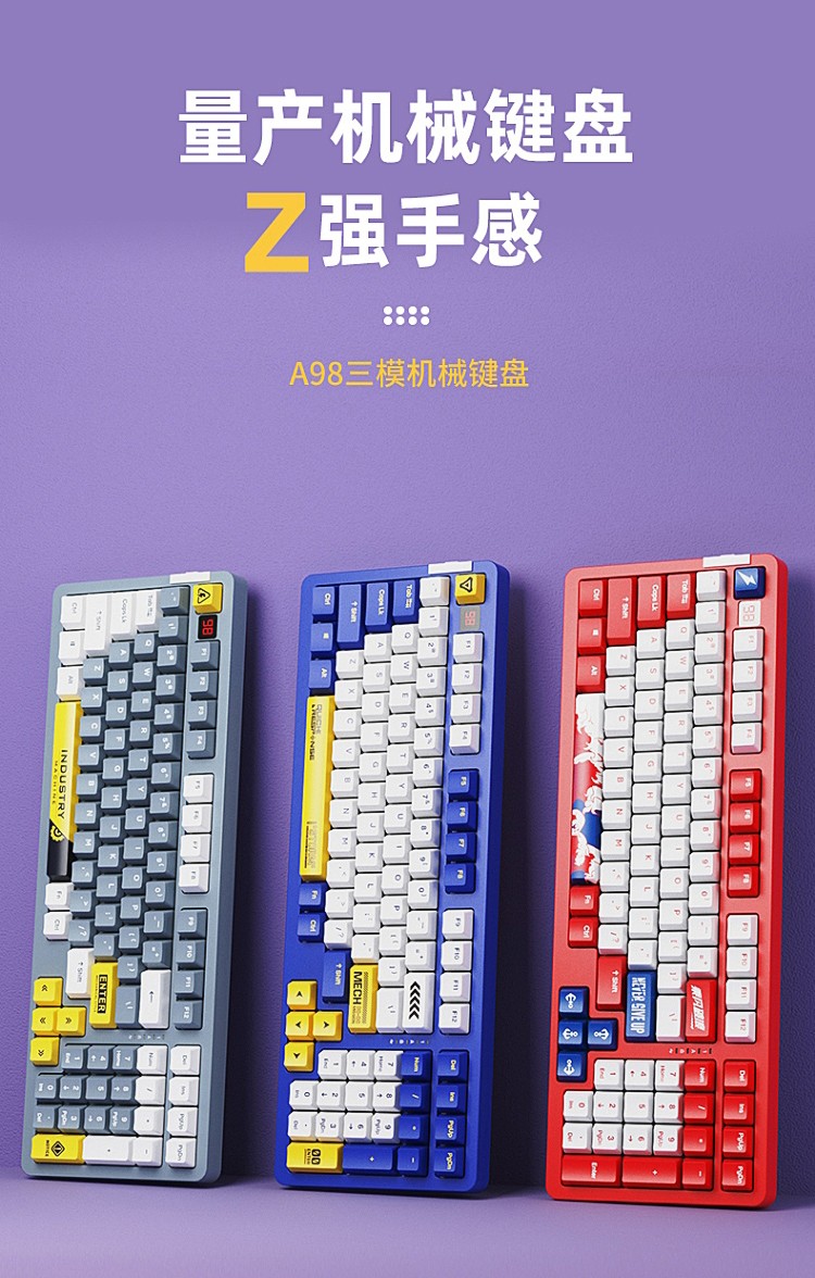 商品名称:达尔优A98机械键盘Gasket结构无线2.4G蓝牙有线三模客制化热插拔轴V3天空轴静电容电竞游戏PBT键帽