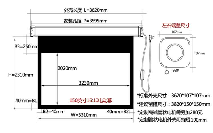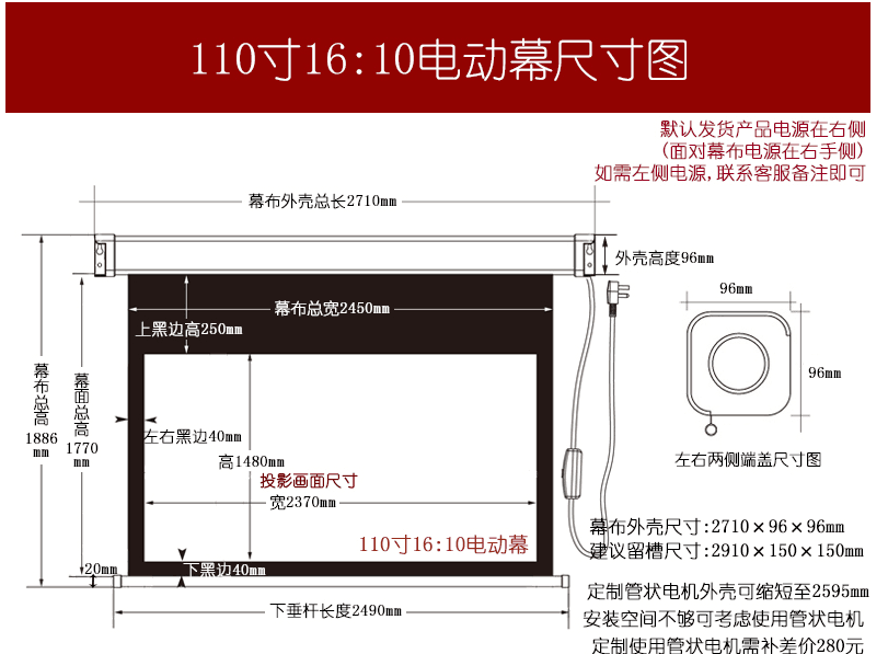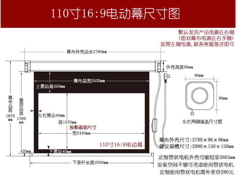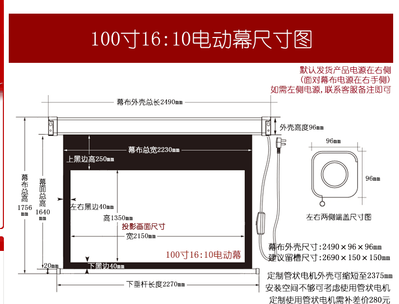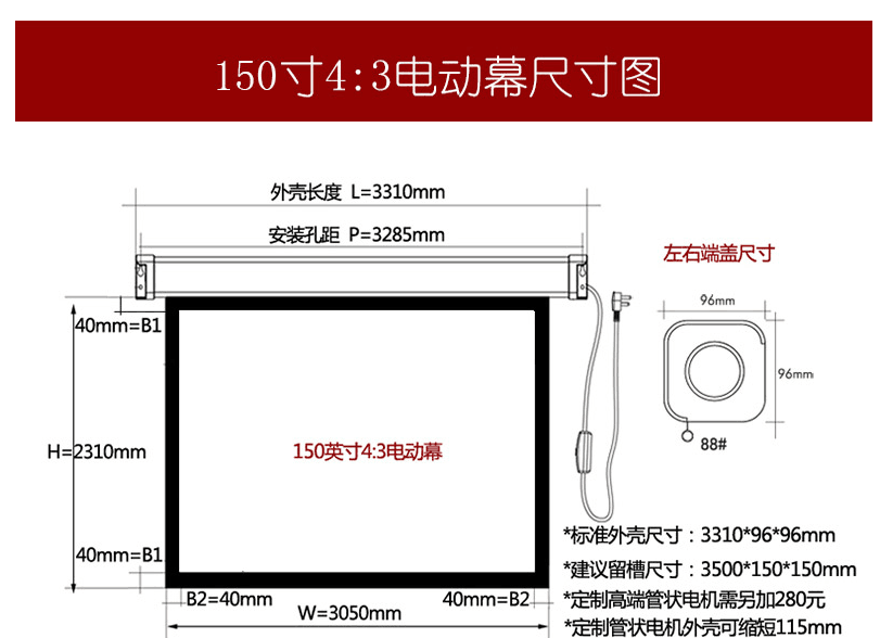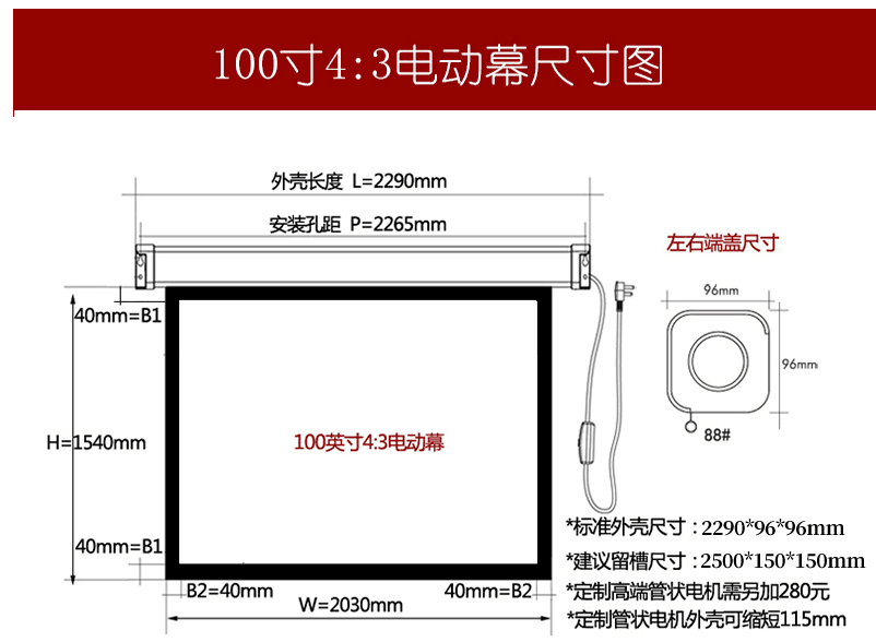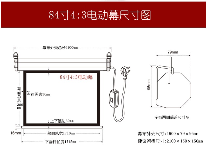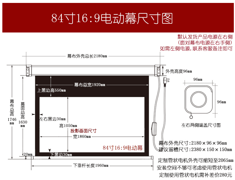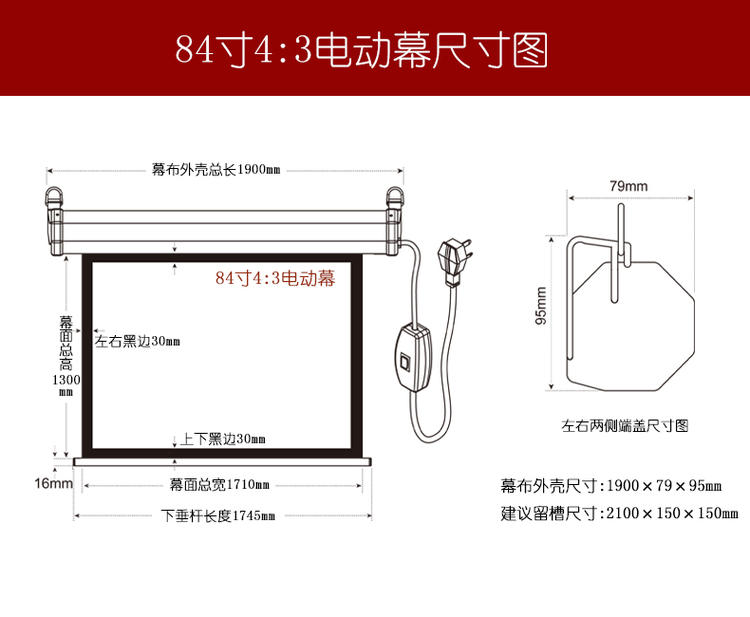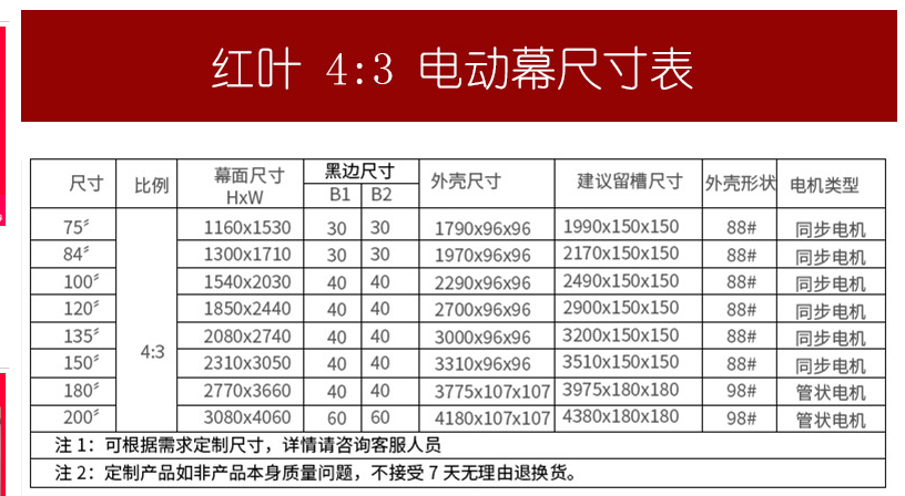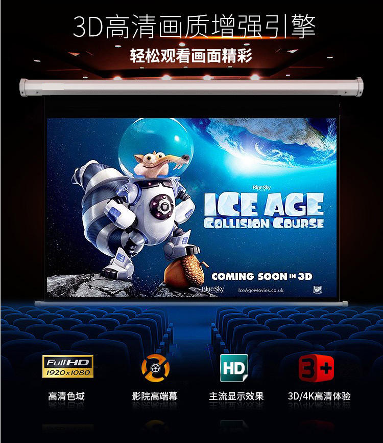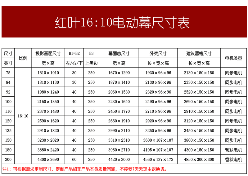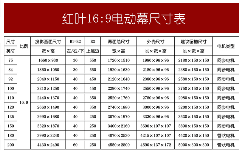 商品名称:红叶电动遥控幕布84寸/100寸/120寸/150寸/180寸/200寸白波纤玻珠
