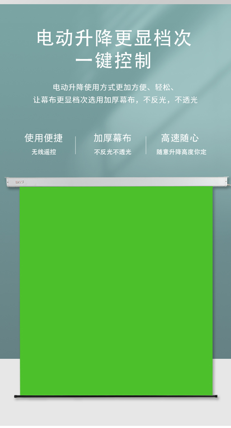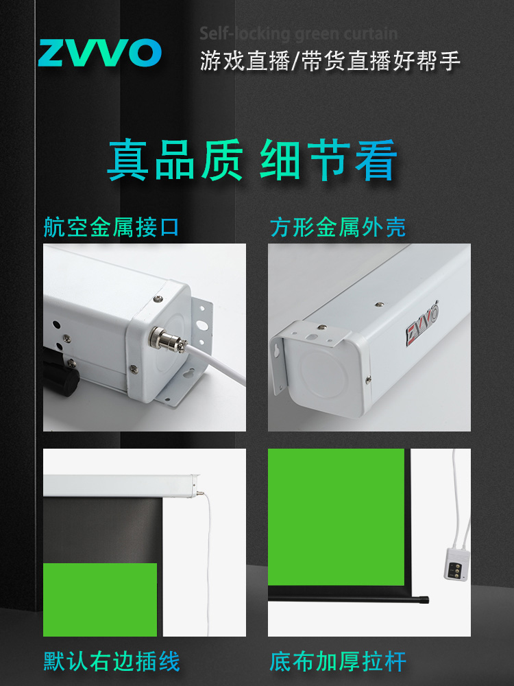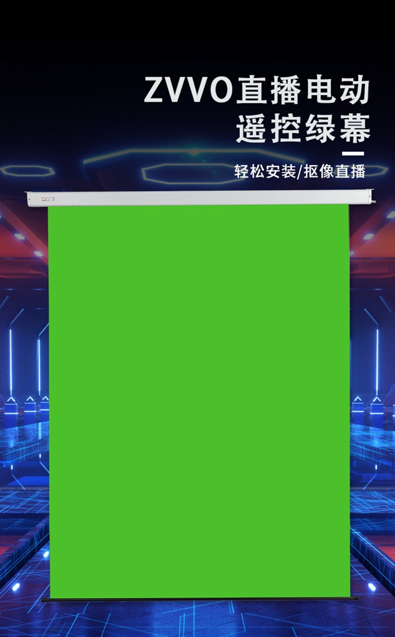 商品名称:ZVVO网红直播绿幕演播室电动遥控蓝绿幕屏幕抠像背景布高度可自由调节可升降抠图绿幕蓝幕方便抠像自锁方便