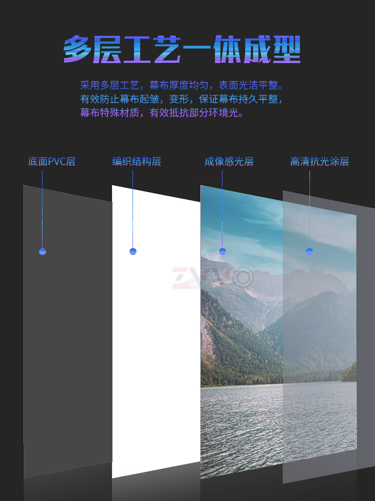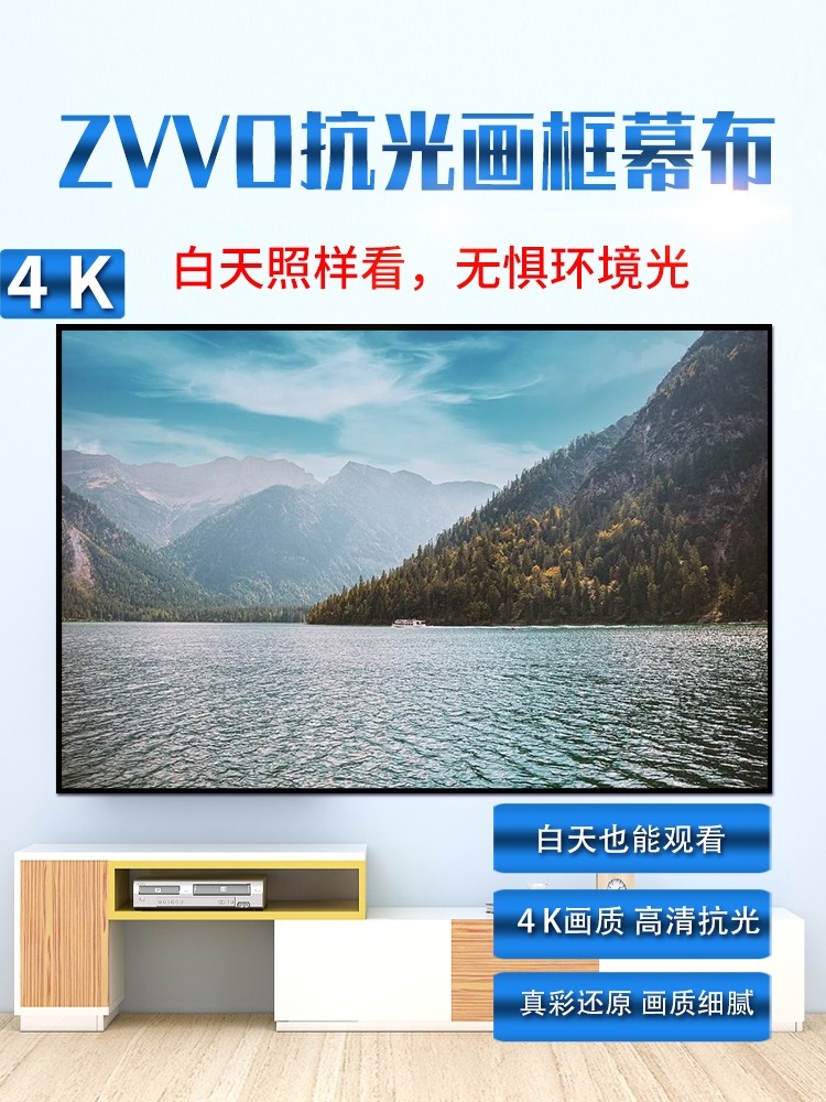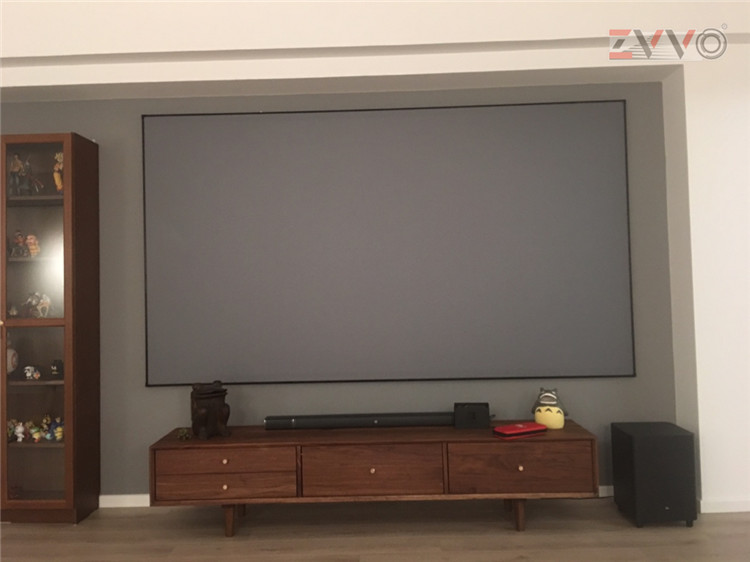ZVVO中长焦抗光幕布投影幕壁挂幕布100寸120寸16 9投影灰晶黑金短焦激光家用超窄边画框幕家庭影院