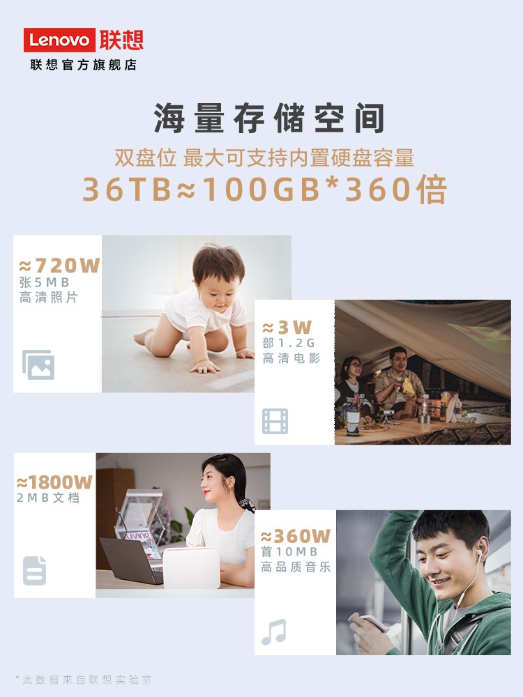Lenovo联想个人云T2/T2 Pro/A1 nas网络存储服务器主机箱局域网数据共享家用家庭私有云储存双盘位西数硬盘