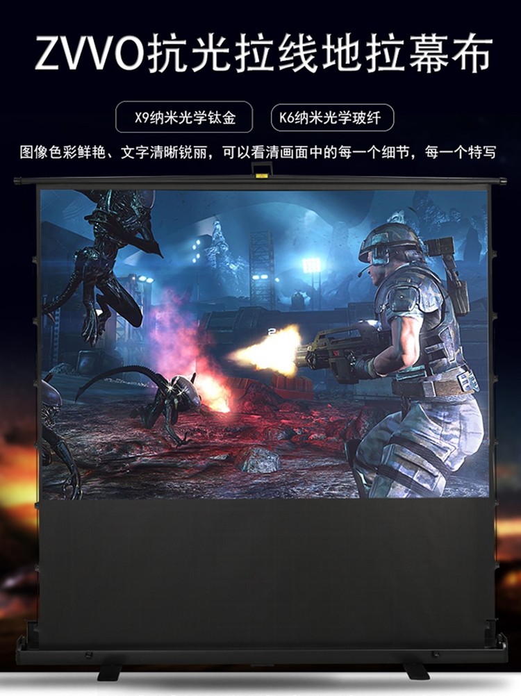 ZVVO抗光拉线地拉幕布便携幕布铝合金外壳高度可调投影幕布家庭影院商务办公婚庆幕布户外地升幕