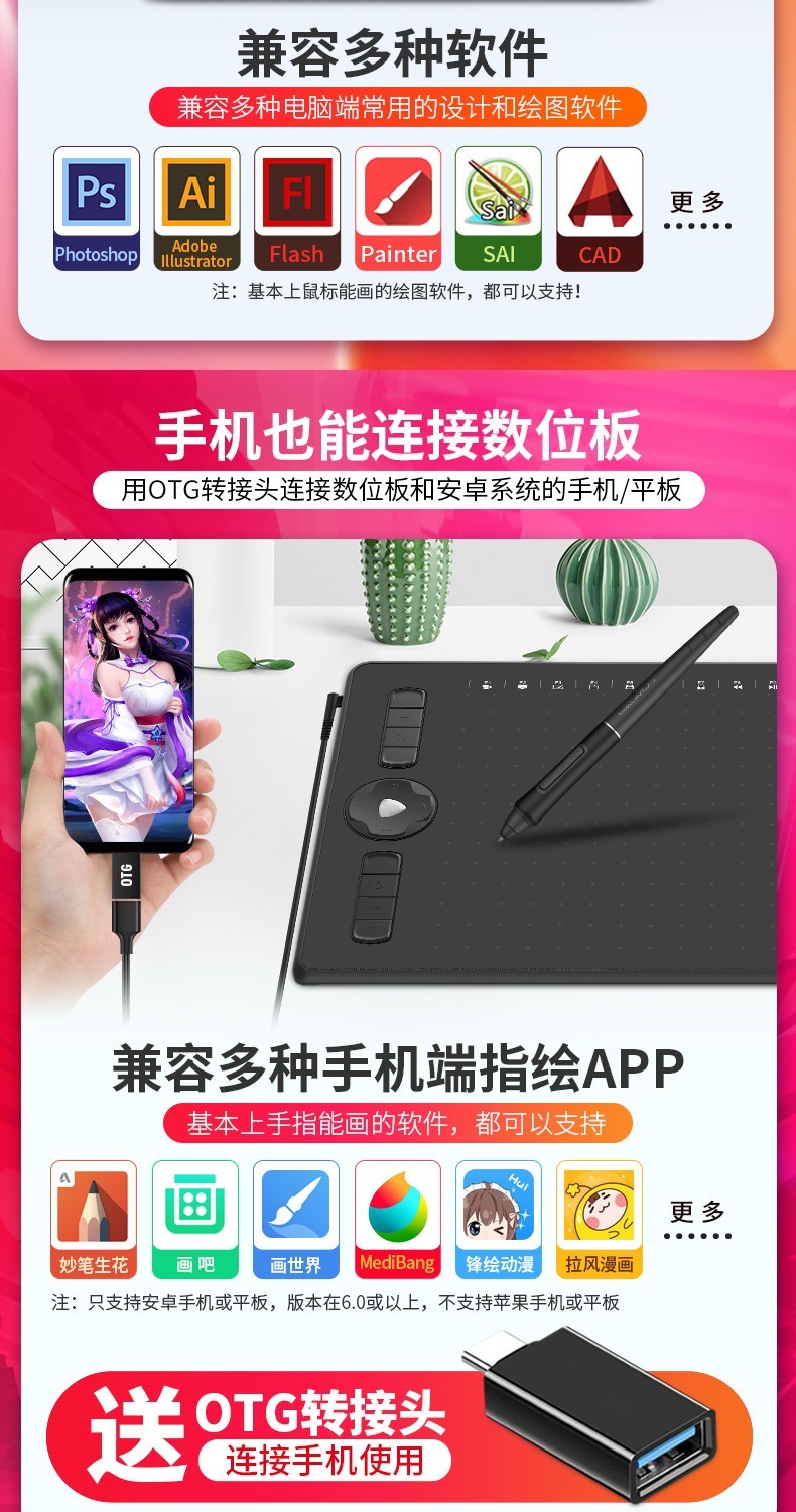 商品名称:高漫新款M7数位板可连接手机手绘板 电脑绘图板电子绘画板智能手写板