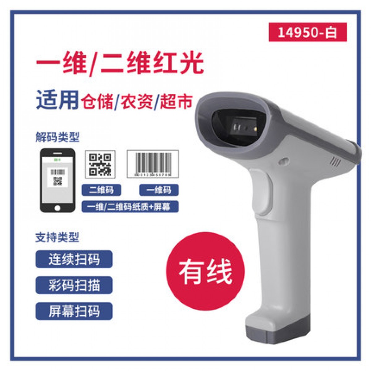 商品名称:得力无线激光扫码枪条码扫描器有线一二维码手持扫描枪银行收银系统快递出入库通用手机支付宝巴枪扫码收钱器 14950-白