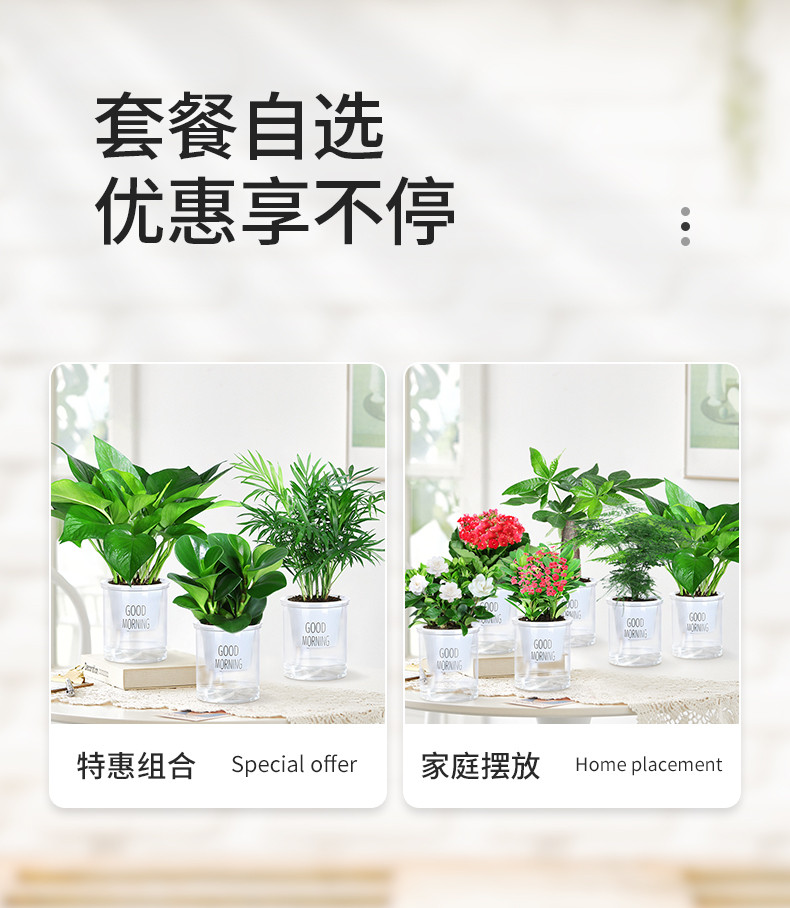 商品名称:绿萝吊兰多肉发财树花卉盆栽办公室内桌面小绿植水养水培好养植物