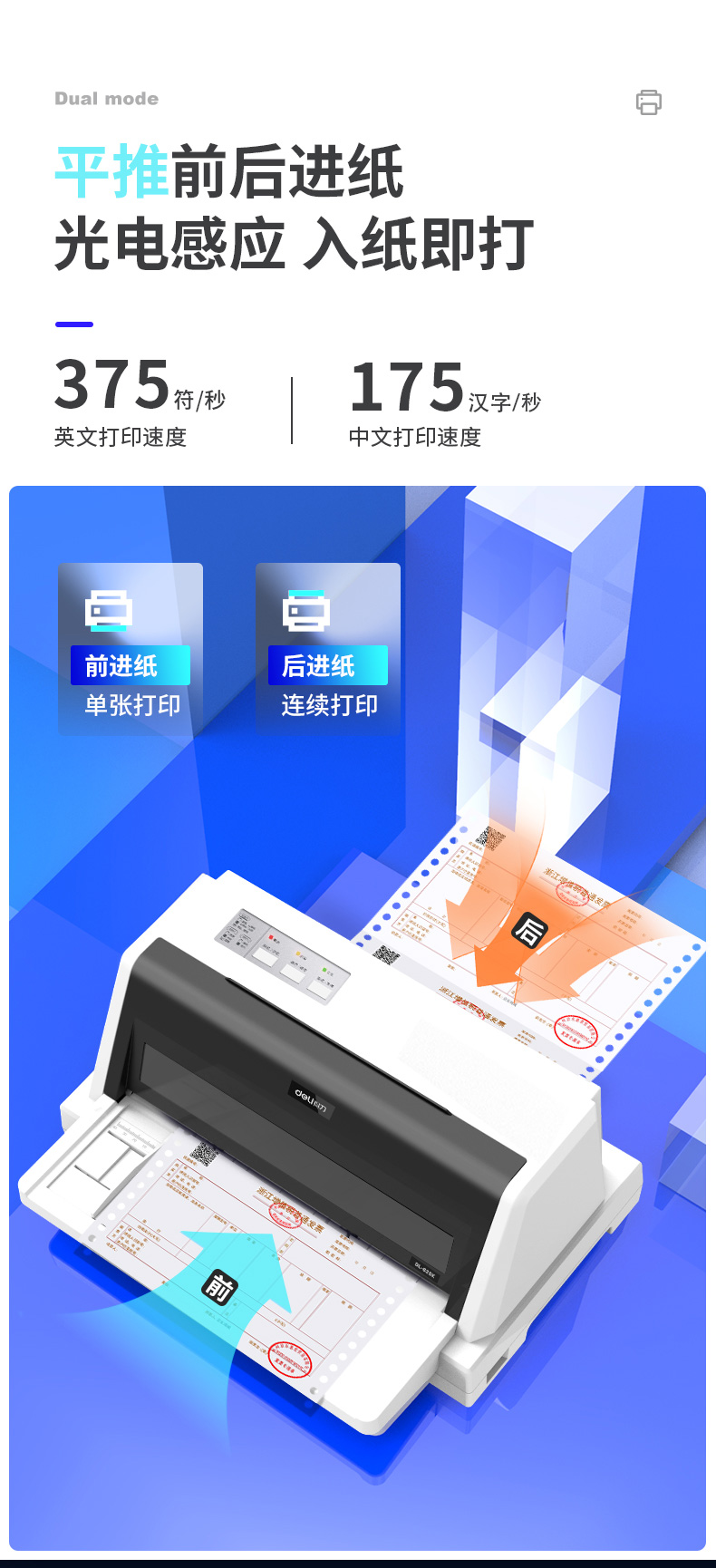 商品名称:得力针式打印机全新票据增值税发票620K开税票专用三联单送货出库单税控办公收据快递单平推式24针针孔打印机
