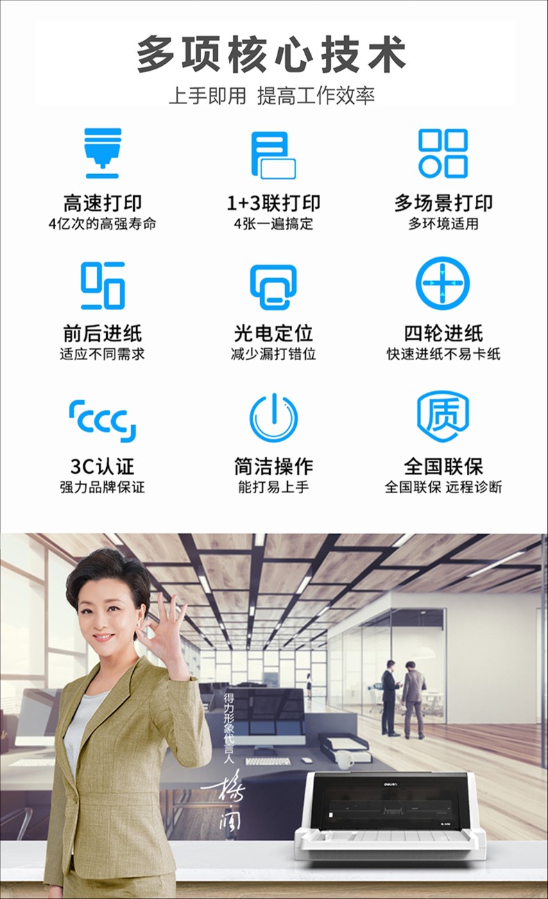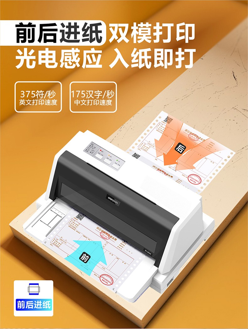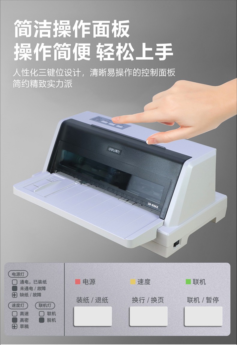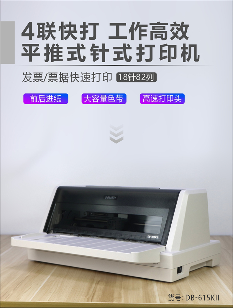 商品名称:得力DB-615KⅡ针式打印机三联单连打开税票专用票据增值税发票快递面单送货单办公专用630K色带打印机平推式