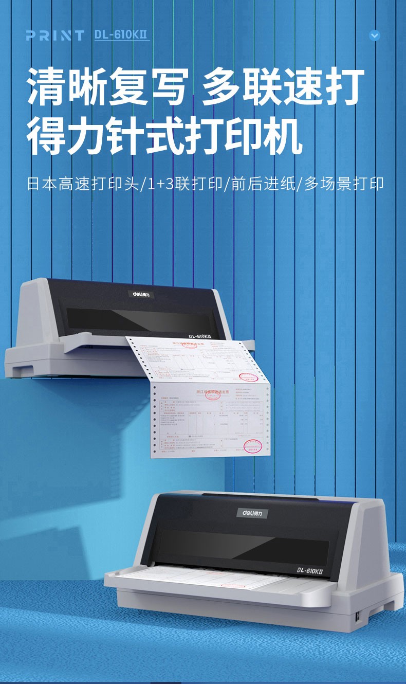 得力针式打印机620K连打送货单三联增值税专用发票630K全新小型办公专用打印收据发货单票据平推式色带打印