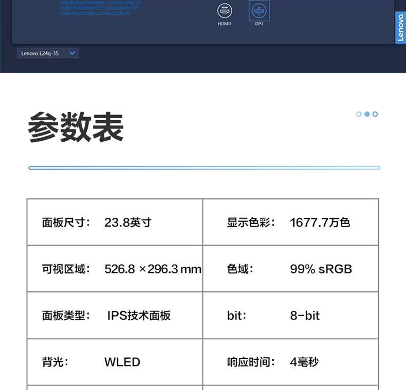 商品名称:【新品】联想显示器 23.8英寸 2K屏IPS L24q-35 内置音响 滤蓝光