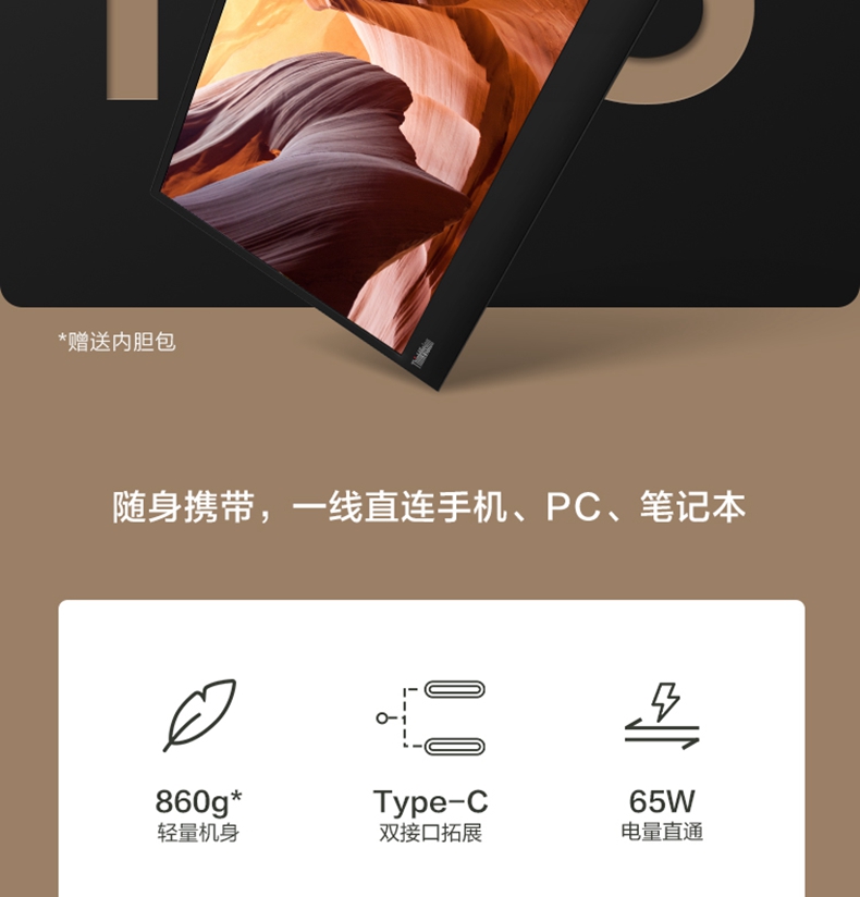 商品名称:联想(ThinkVision) M15 15.6英寸 双TypeC低蓝光一体式便携显示器