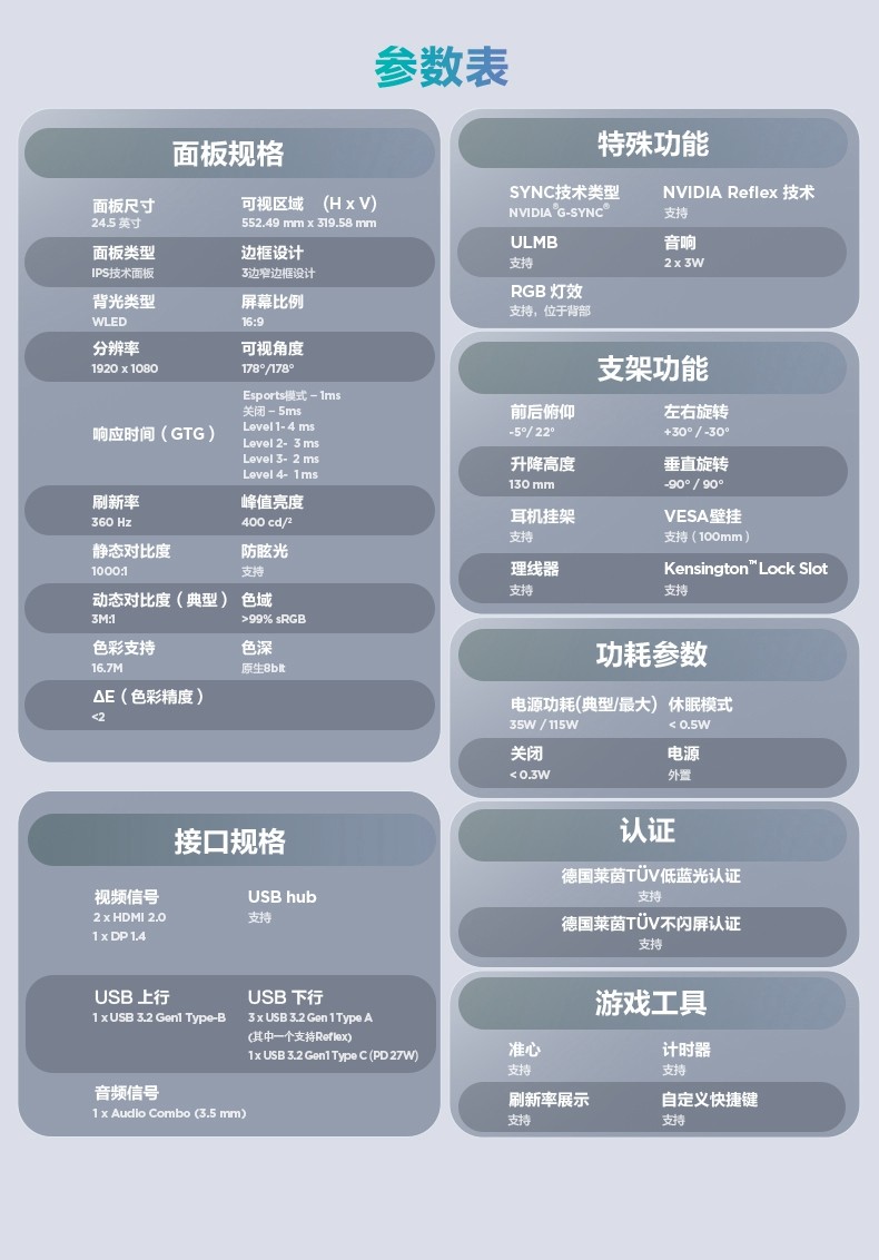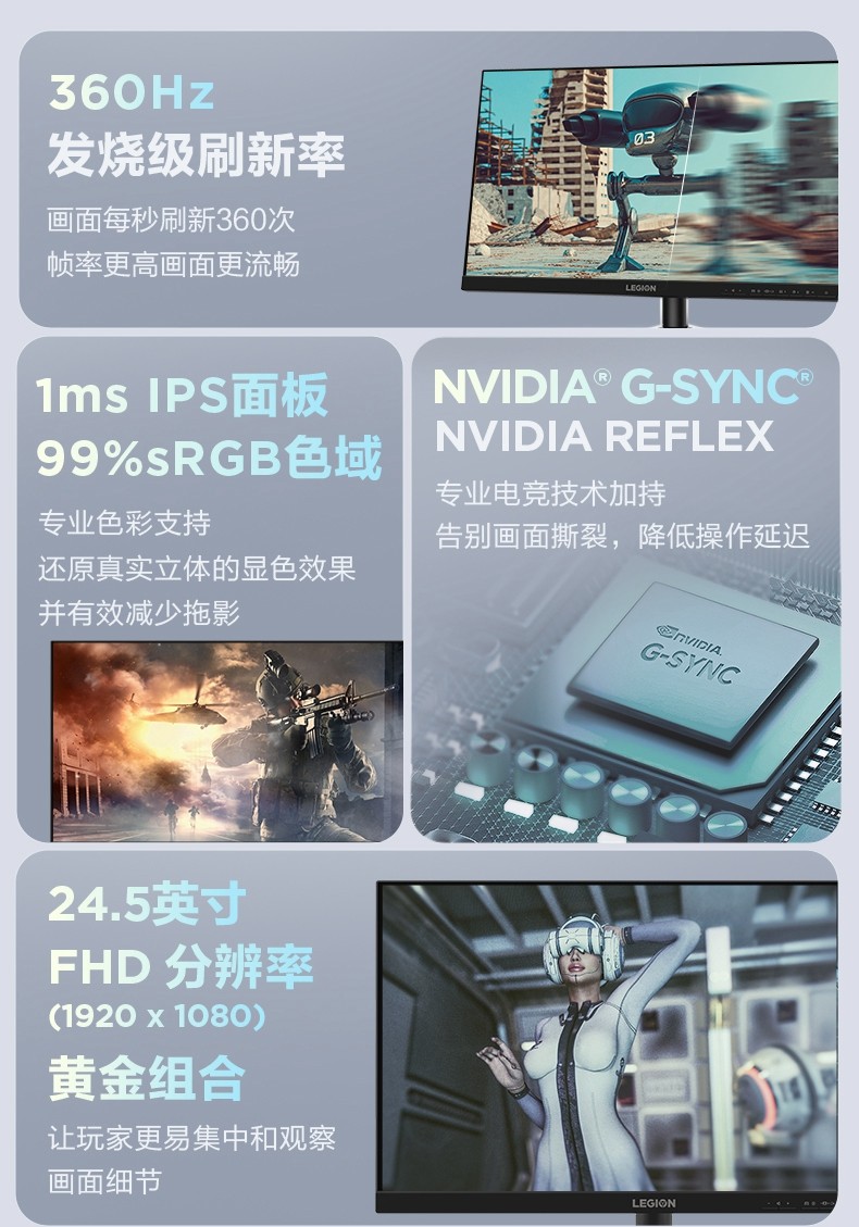 商品名称:联想24.5英寸 IPS 360Hz超高刷新率发烧级电竞显示器 Y25g-30