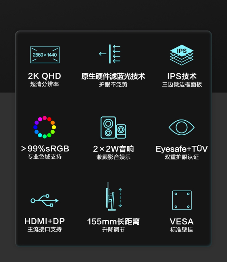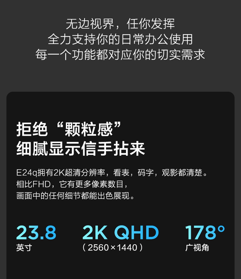 商品名称:联想E系列 23.8/27英寸显示器广色域QHD IPS屏 滤蓝光 E24q/E27q