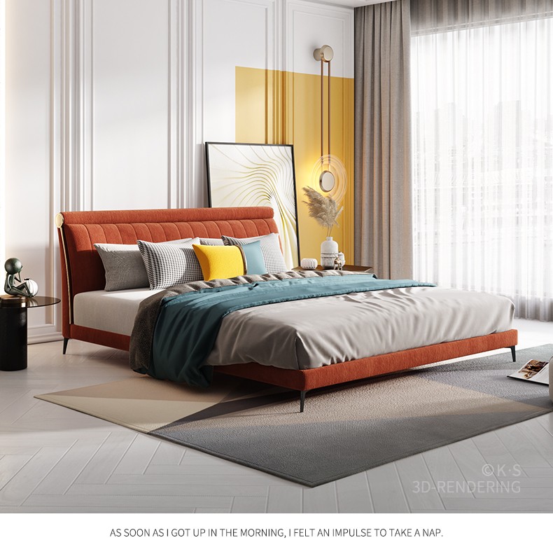 卡实KS现代布艺床轻奢单双人2021新款科技绒布床主次卧红色大婚床