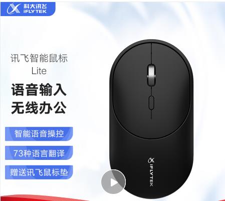商品名称:科大讯飞智能鼠标Lite 语音鼠标 无线办公 充电鼠标 蓝牙鼠标 静音按键设计 语音输入打字翻译 黑