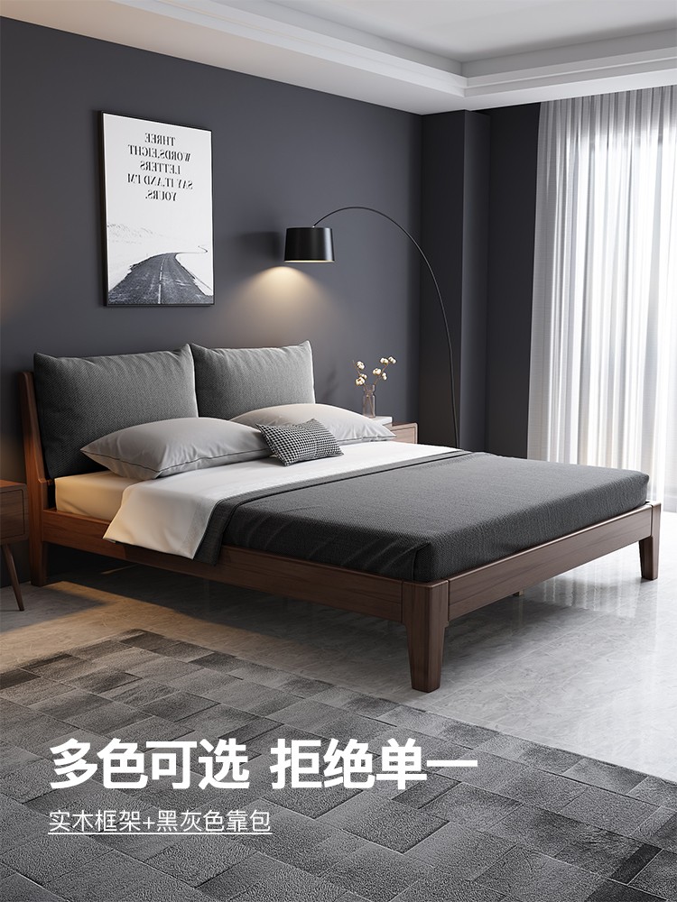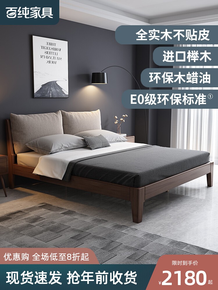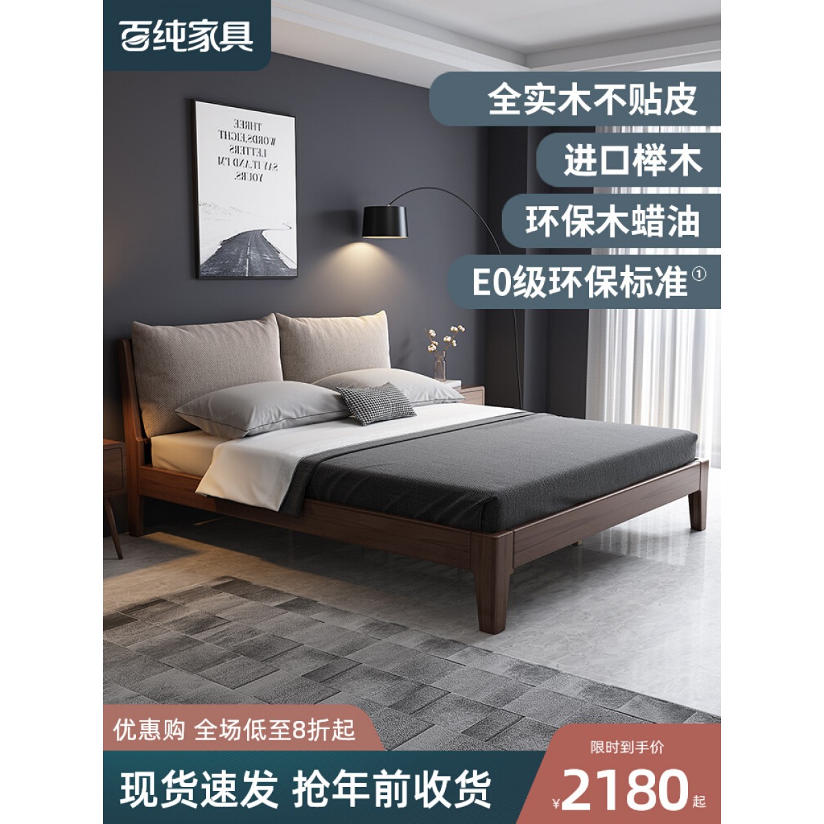百纯北欧风床现代简约全实木床1.8米榉木主卧双人1.5米带软靠婚床