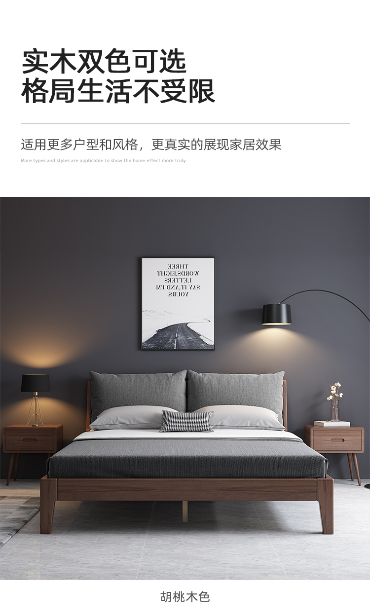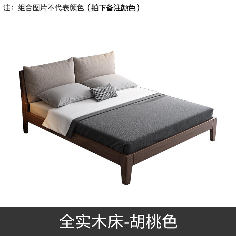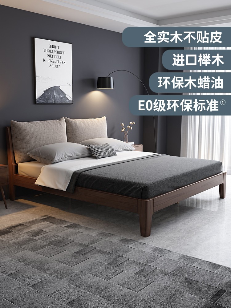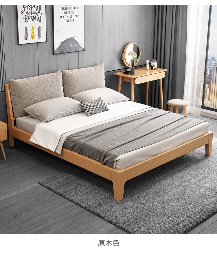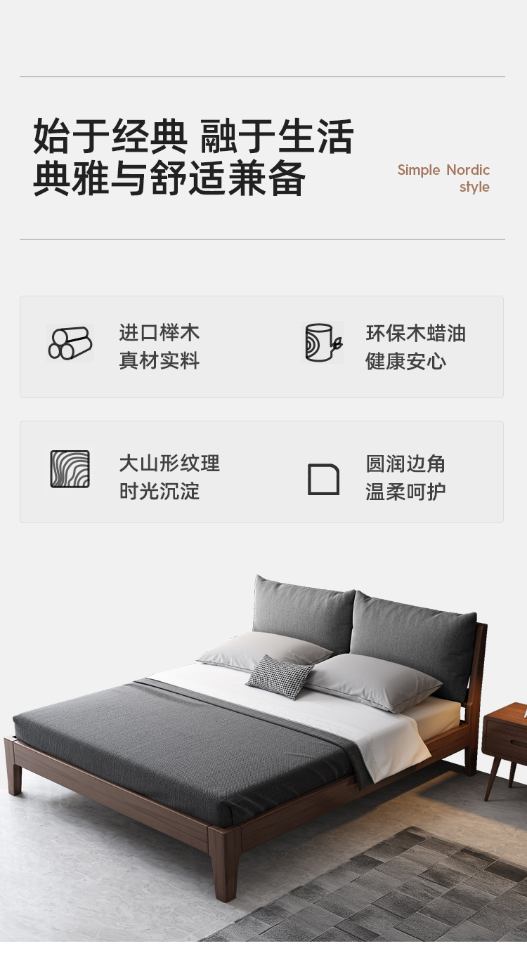 商品名称:百纯北欧风床现代简约全实木床1.8米榉木主卧双人1.5米带软靠婚床