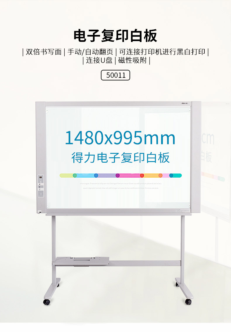 商品名称:得力(deli)电子白板可复印打印 扫描储存 自动翻页 支架式白板 家用教学办公会议 50013 支架 144*123*67cm
