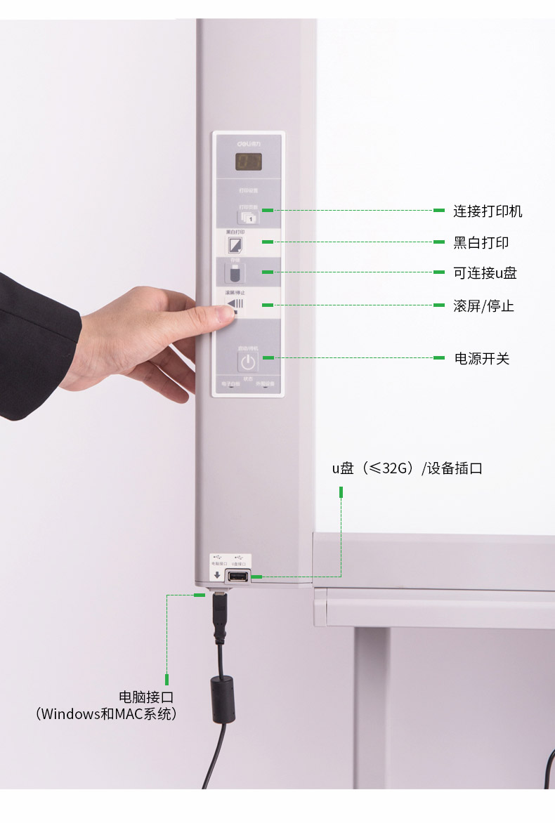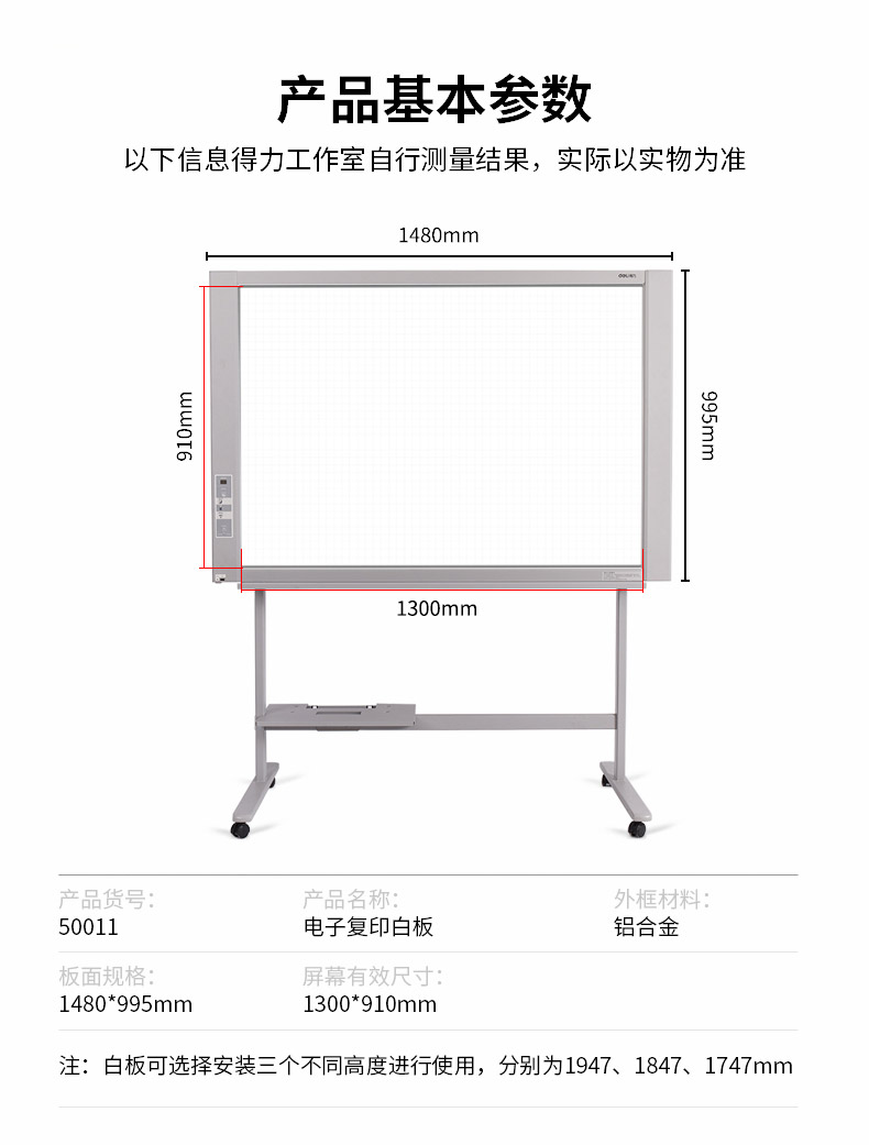 得力(deli)电子白板可复印打印 扫描储存 自动翻页 支架式白板 家用教学办公会议 50013 支架 144*123*67cm