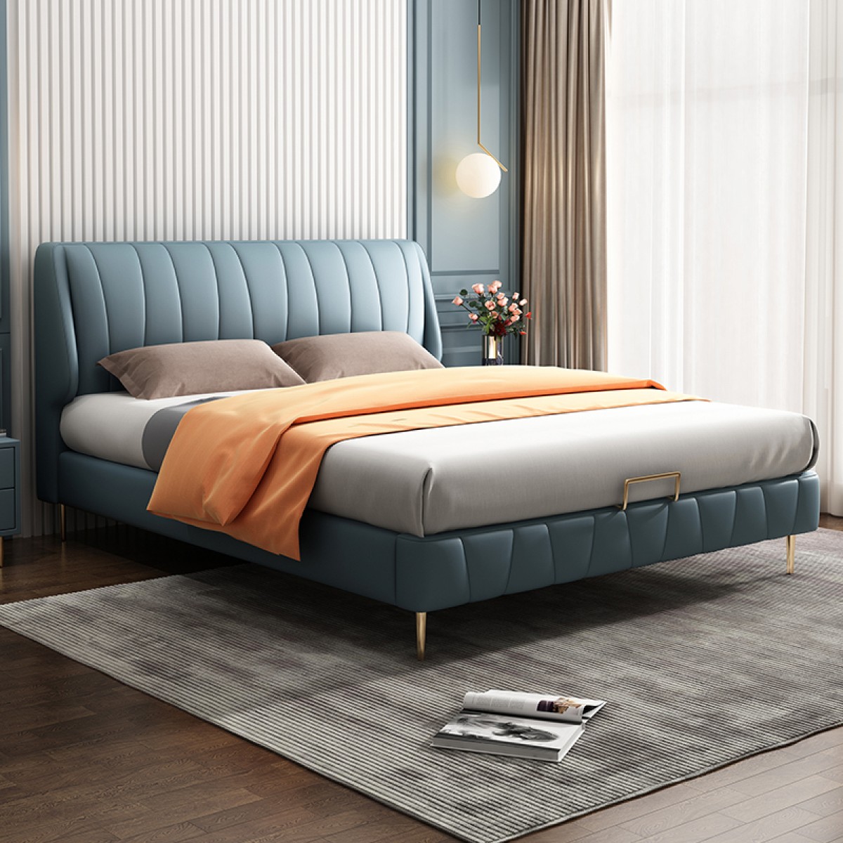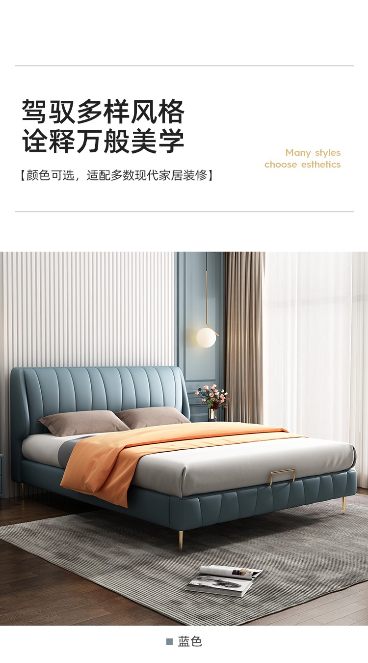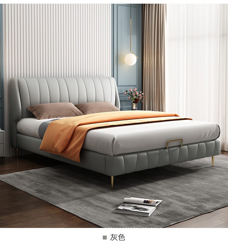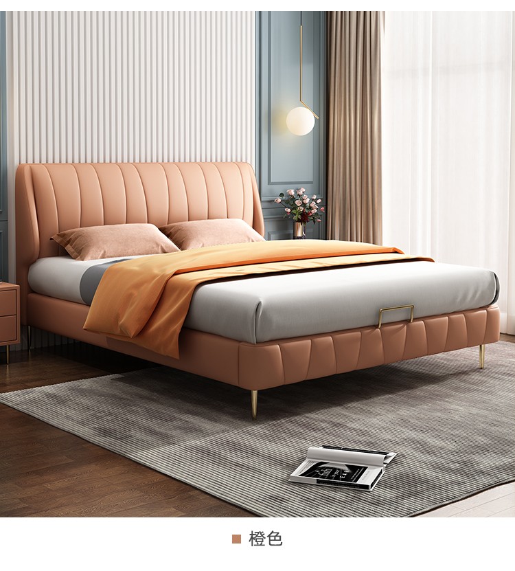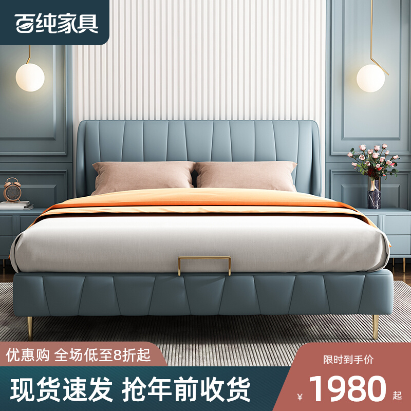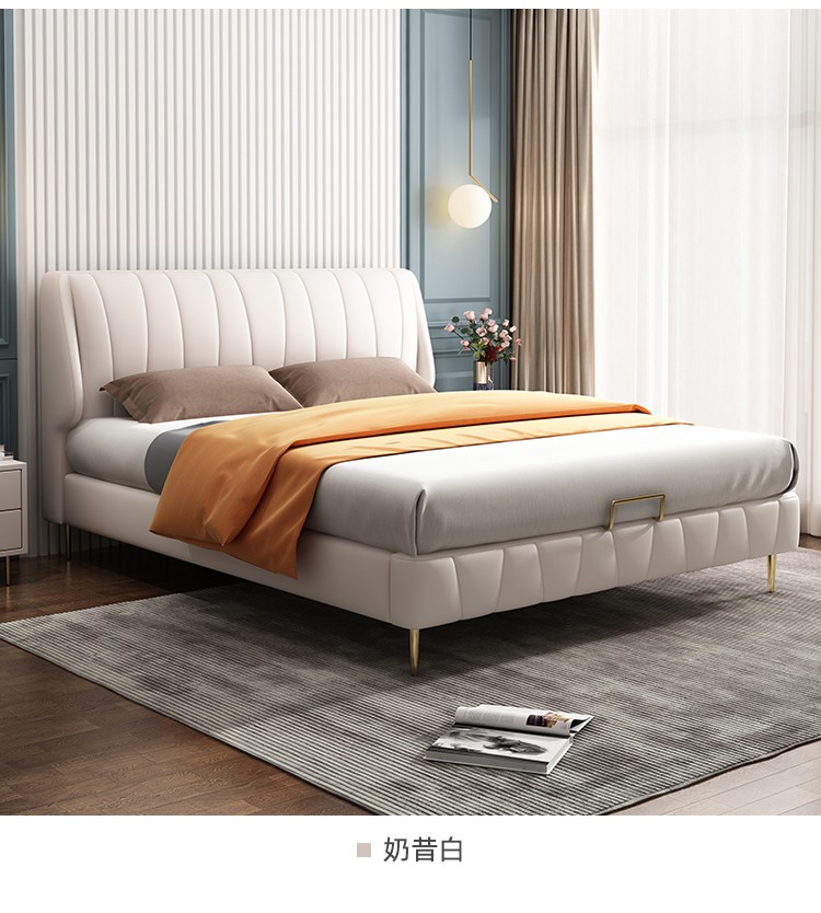 商品名称:百纯 轻奢真皮床简约现代1.8米主卧双人床极简风格意式婚床网红款