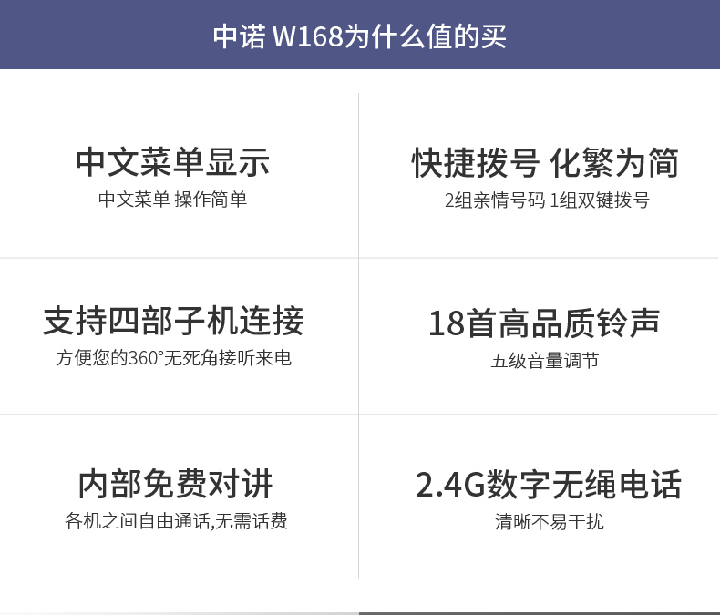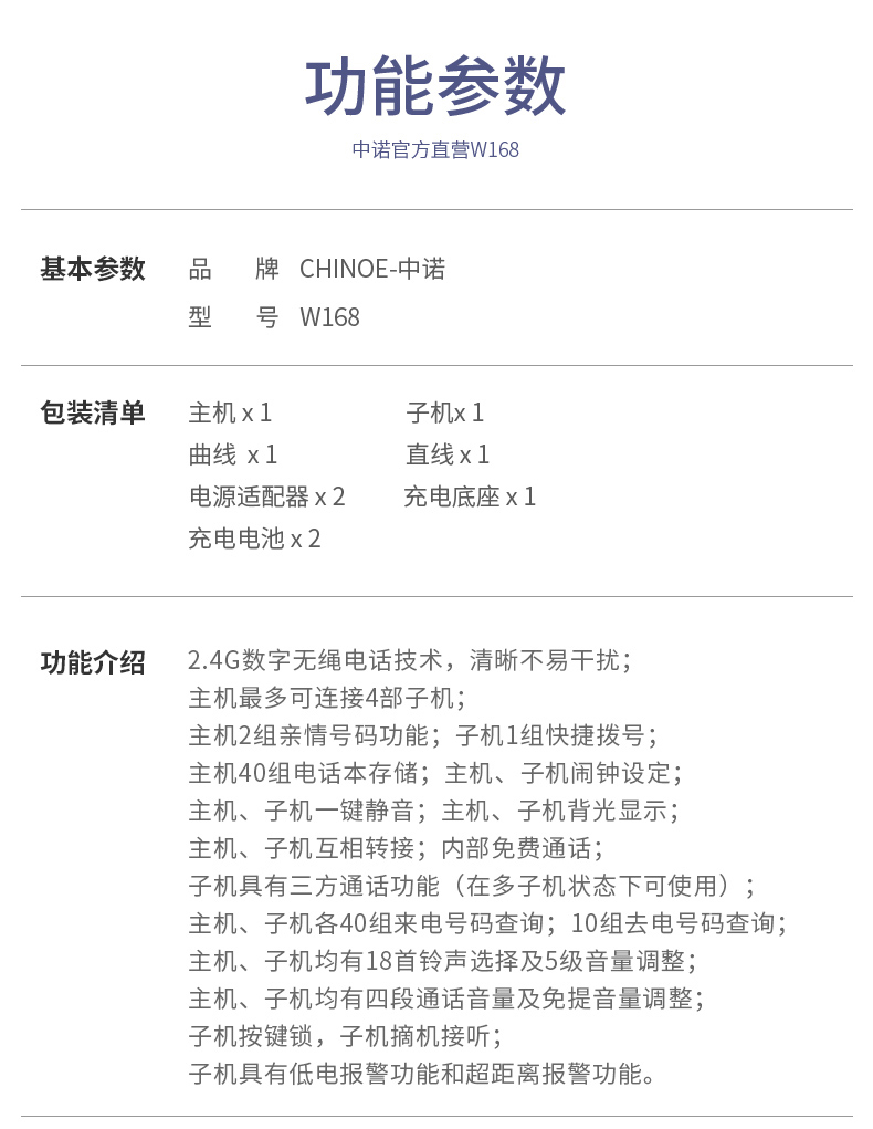 商品名称:中诺w168数字无绳电话机 办公子母机 家用无线固话座机电话机