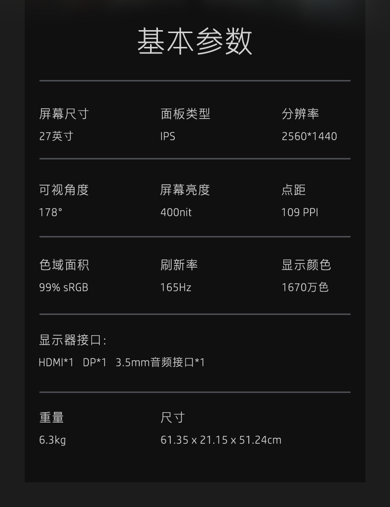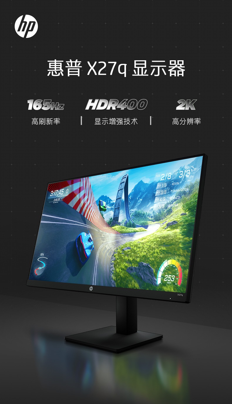 商品名称:惠普光影精灵27英寸2k 165hz电竞游戏升降旋转壁挂显示屏1ms响应
