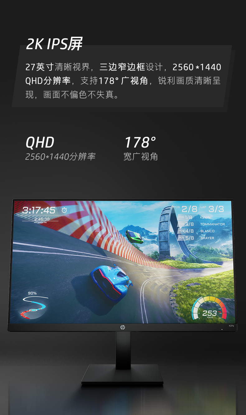 惠普光影精灵27英寸2k 165hz电竞游戏升降旋转壁挂显示屏1ms响应