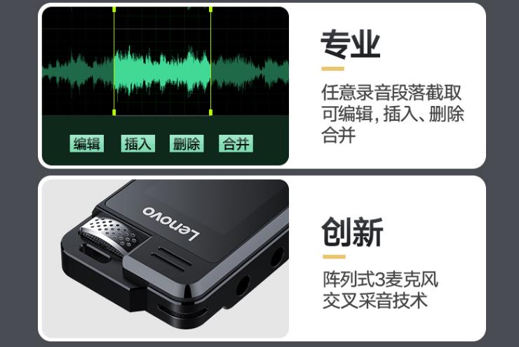 商品名称:联想(Lenovo)录音笔 T505 32G高清降噪 录音编辑 可扩展专业录音器学习商务采访会议培训 100016340724