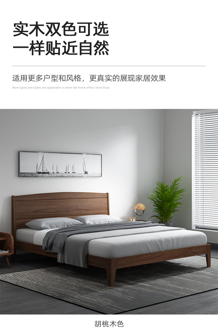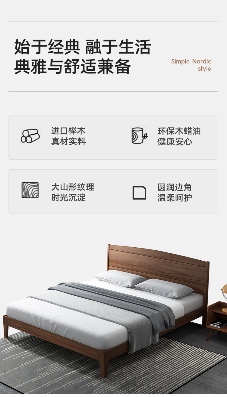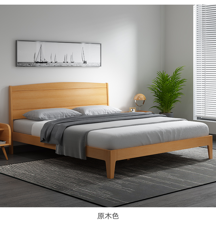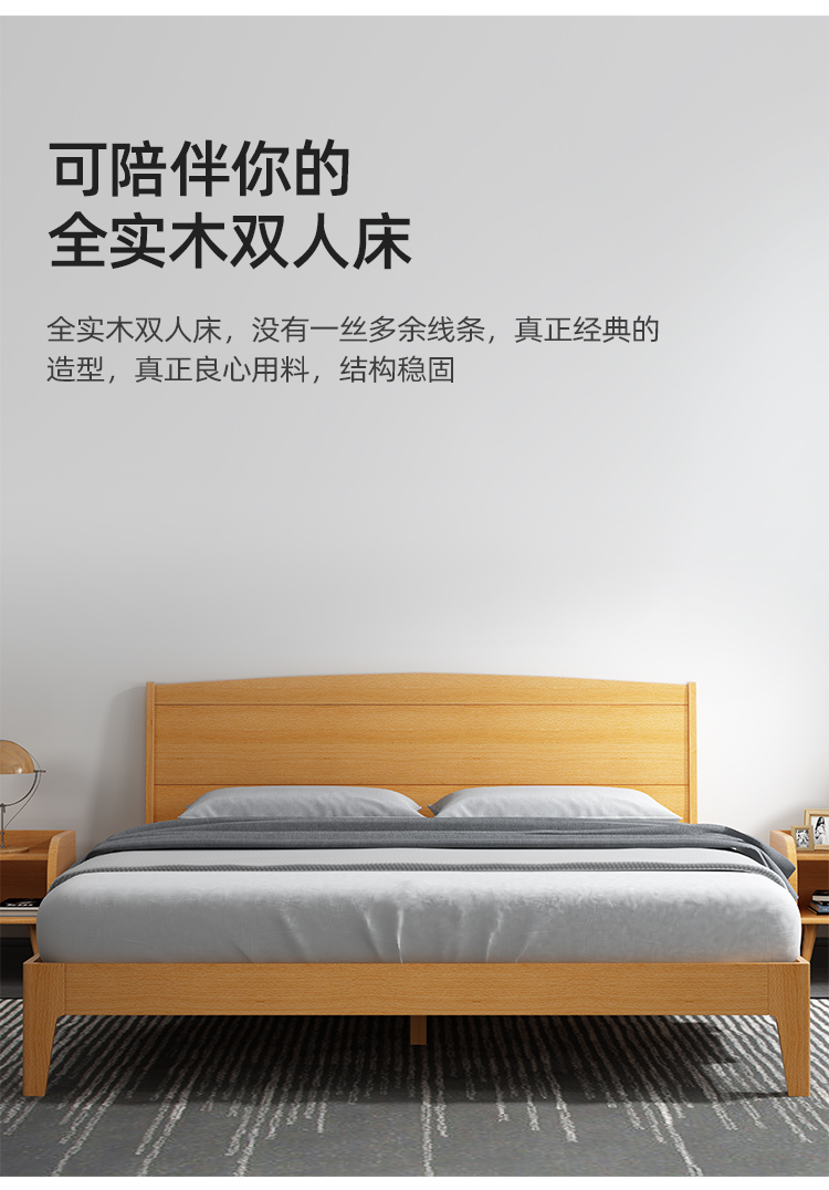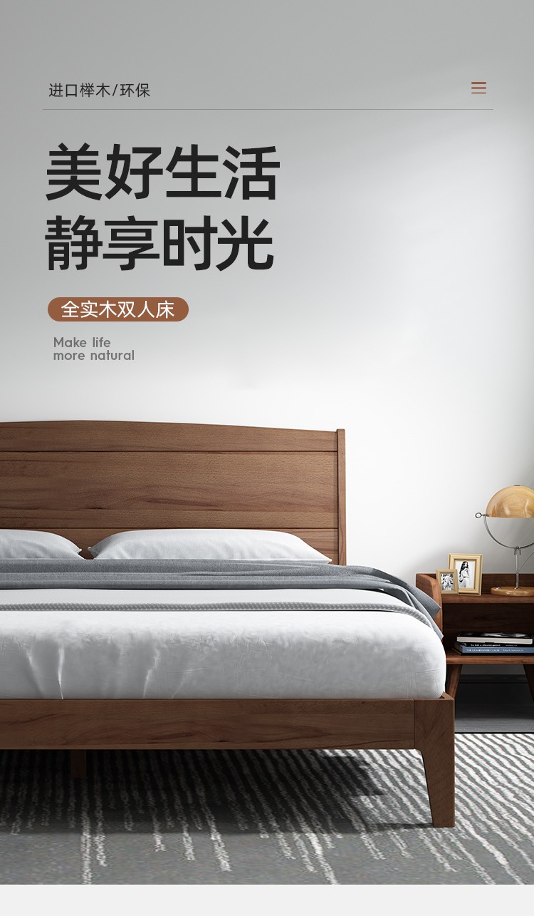 商品名称:百纯家具全实木床卧室1.8米榉木床北欧床现代简约1.5主卧双人床QC