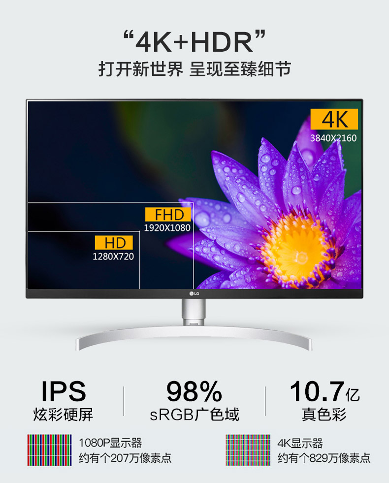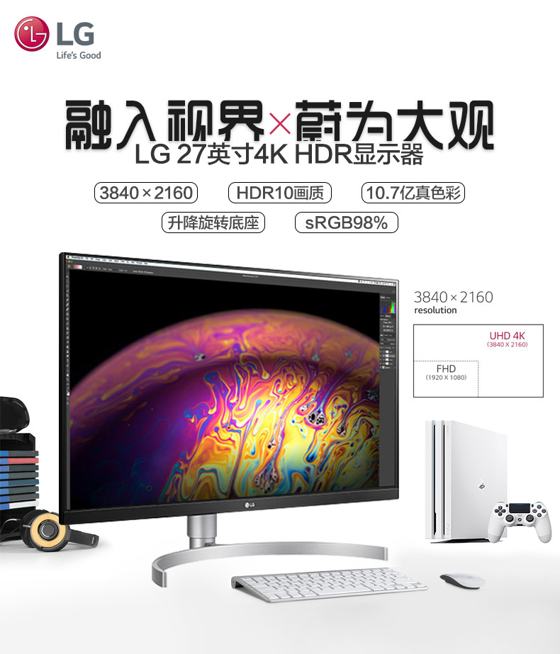 商品名称:【保无点/当天发】LG 27UL550 27英寸4K超清HDR显示器IPS升降旋转设计绘图10bit爱眼电脑液晶PS5屏幕27UL500