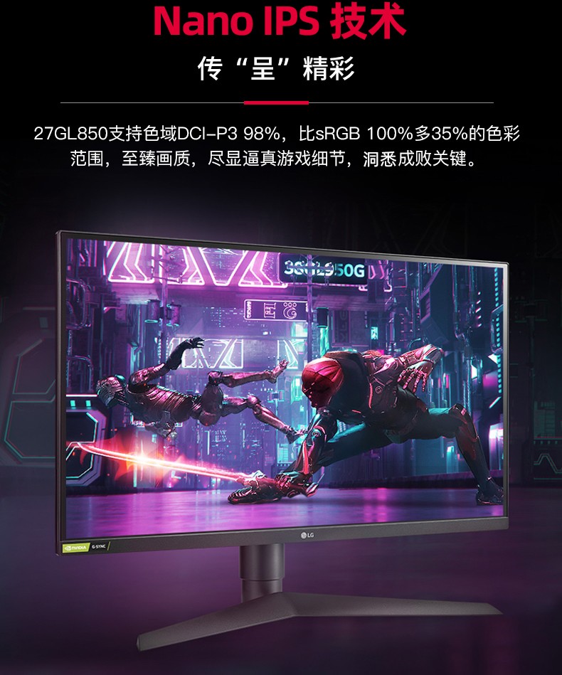 LG 27GL850 27英寸2K 144Hz电竞显示器NanoIPS电竞游戏HDR设计摄影电脑PS5主机GP850