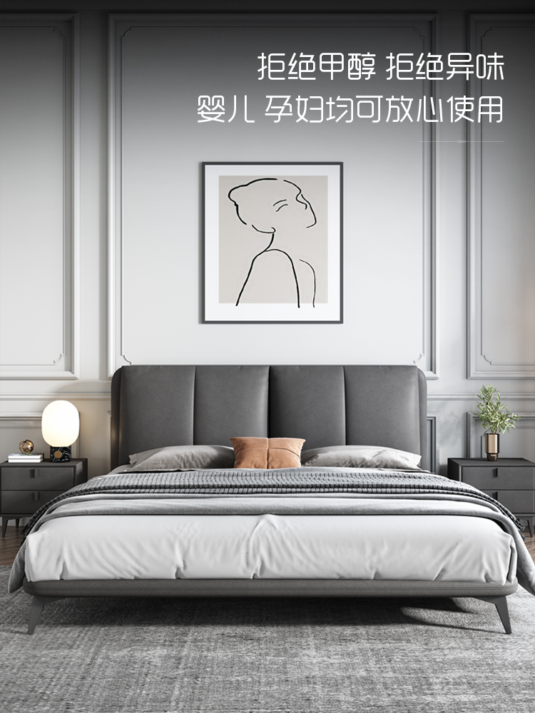 狄普科技布床简约现代卧室布艺双人网红床ins风轻奢主卧1.8m大床