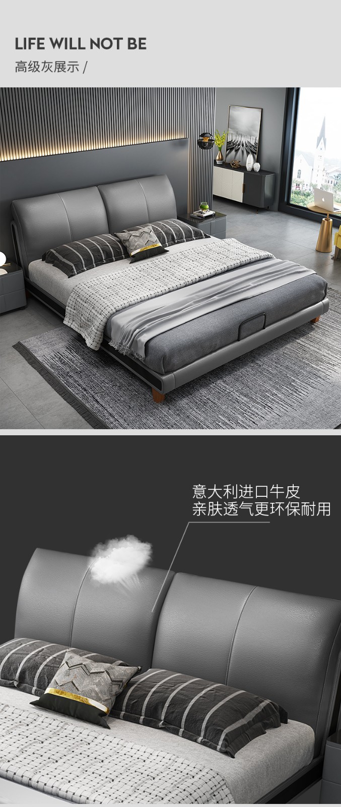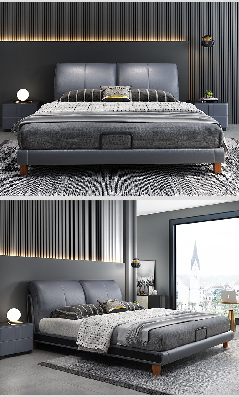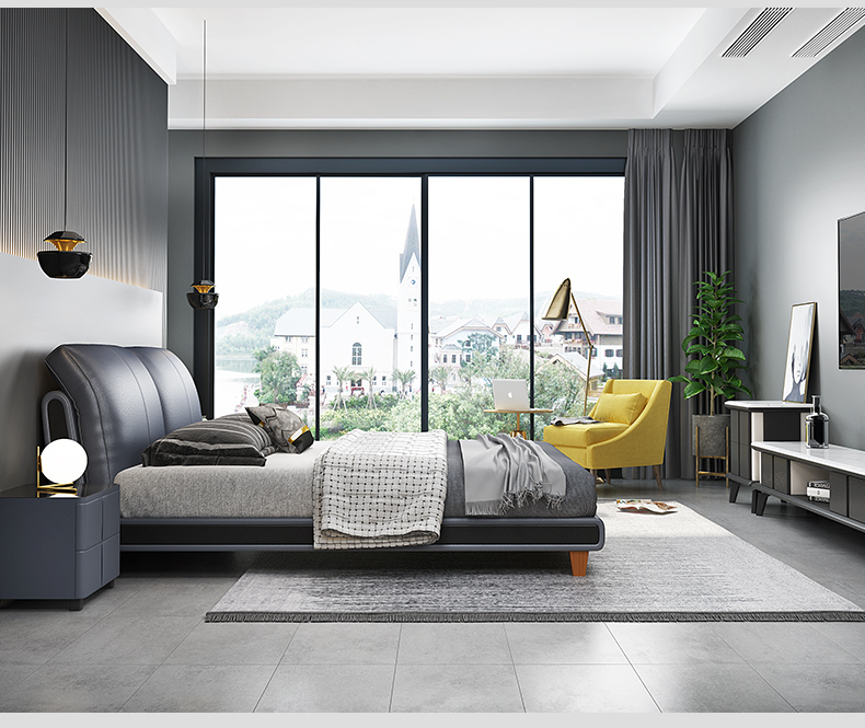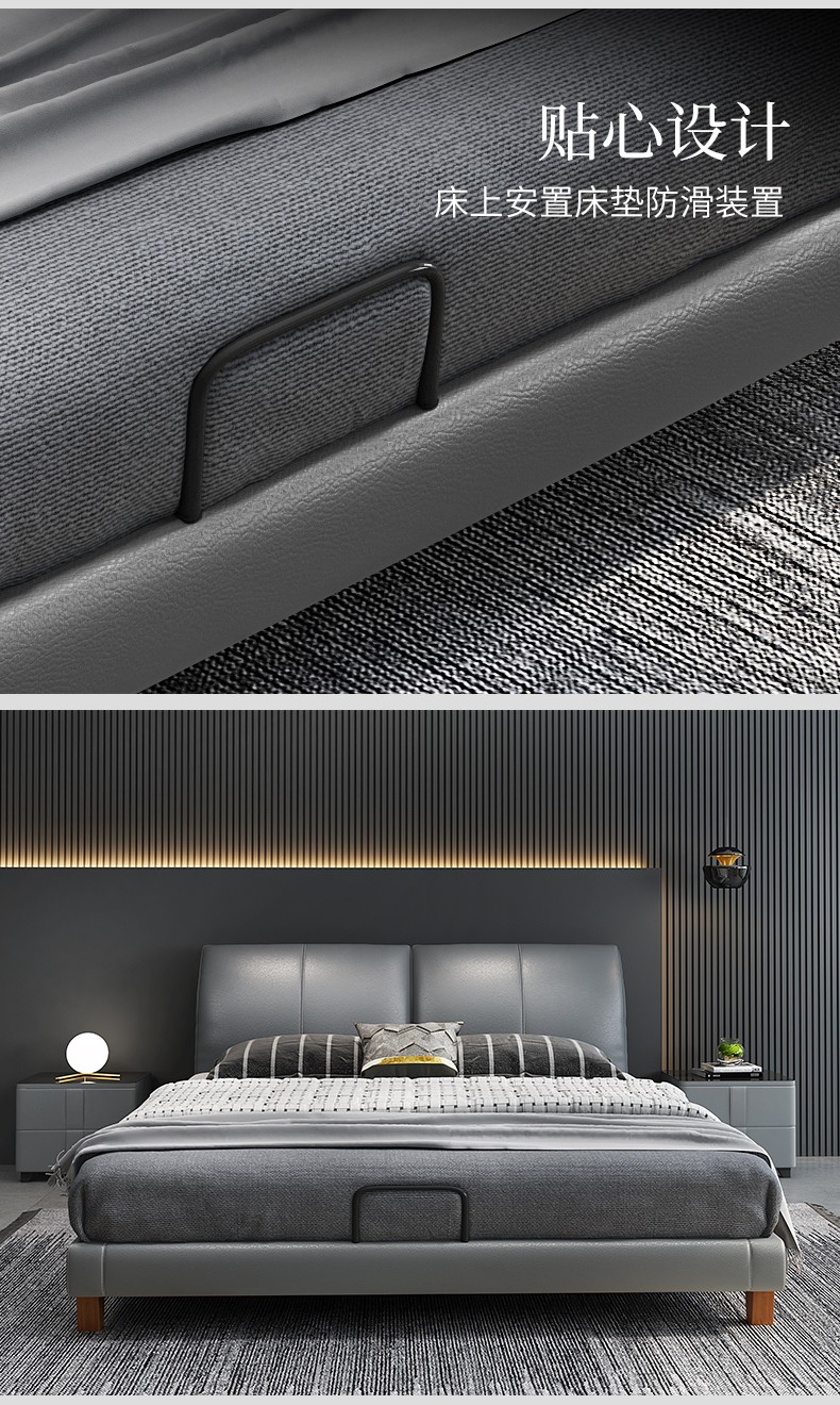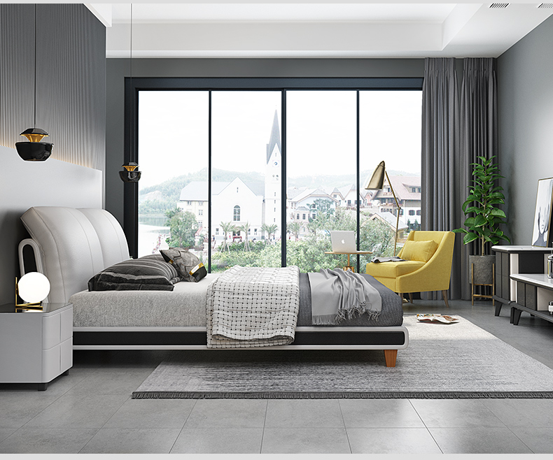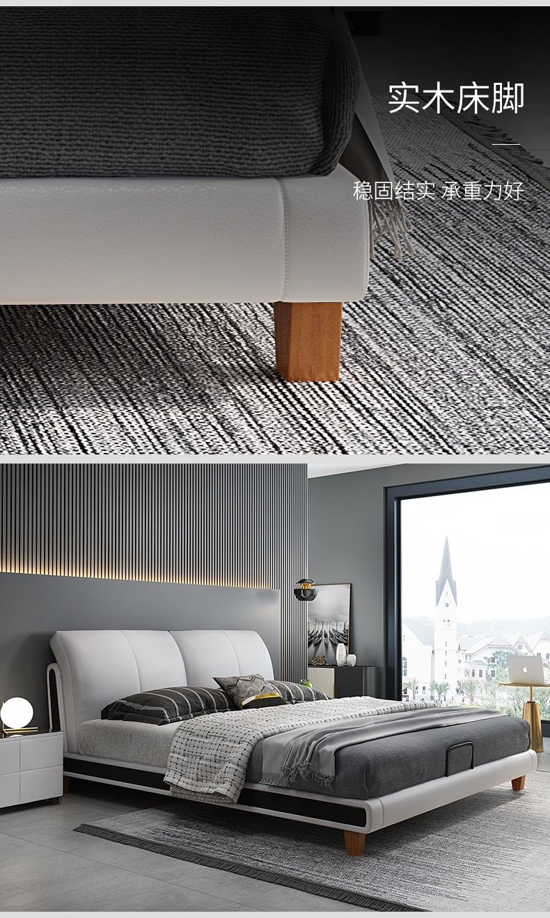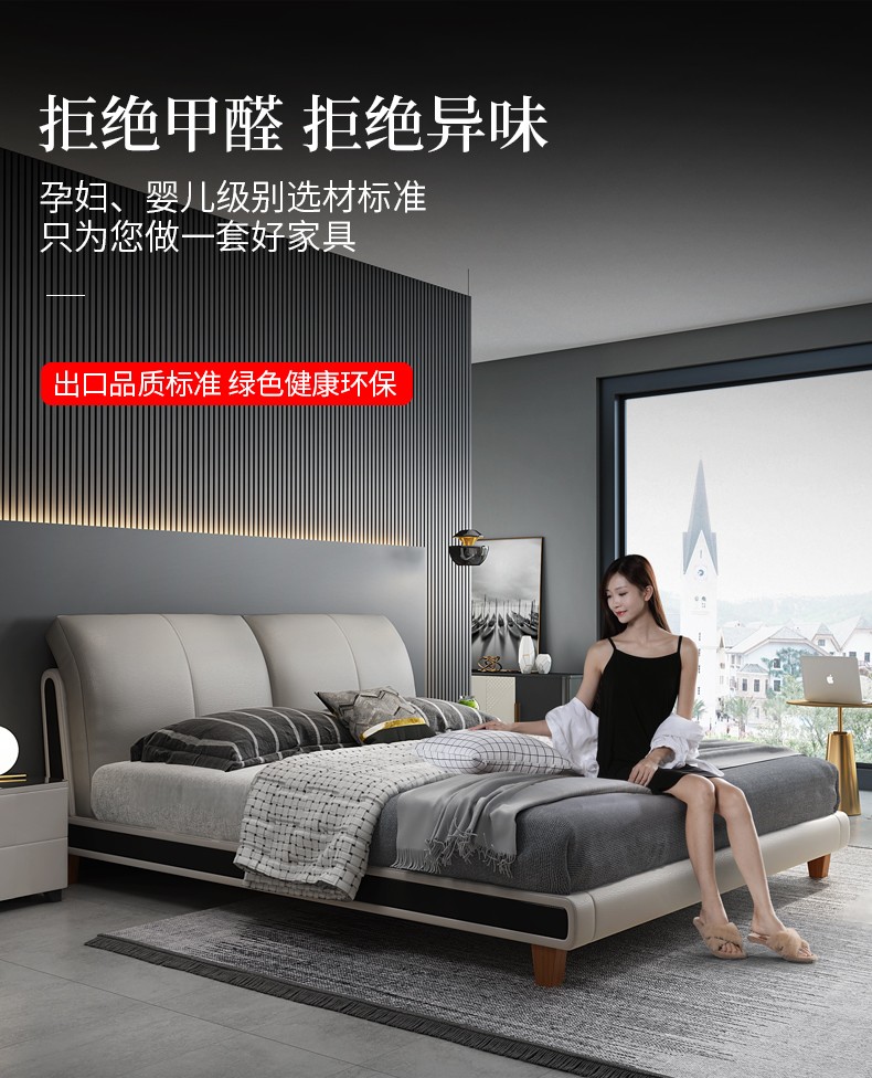 狄普床现代简约真皮床1.8米双人床卧室床北欧主卧皮艺床成套家具