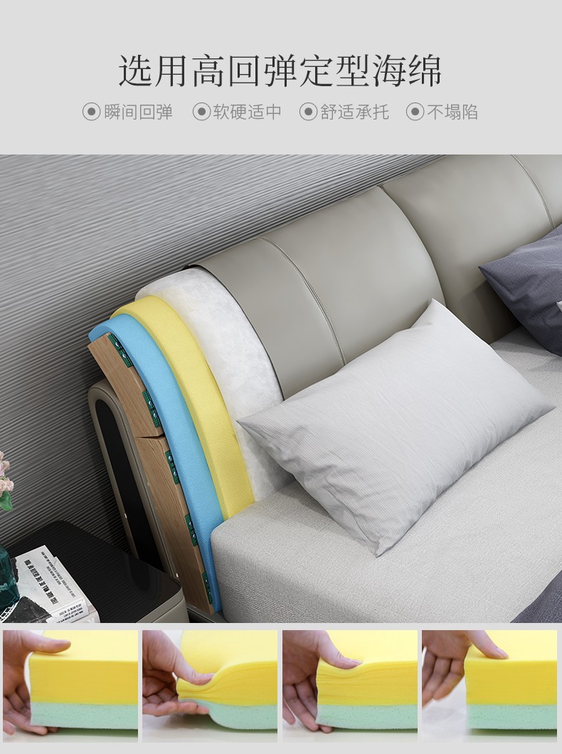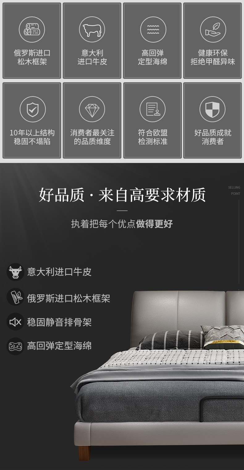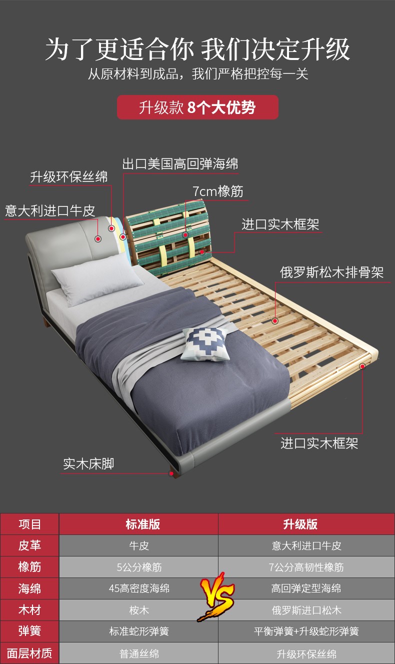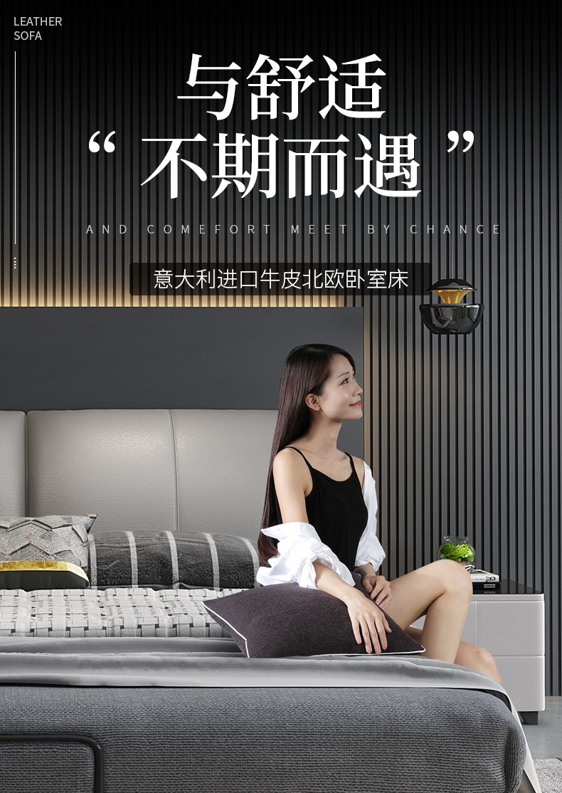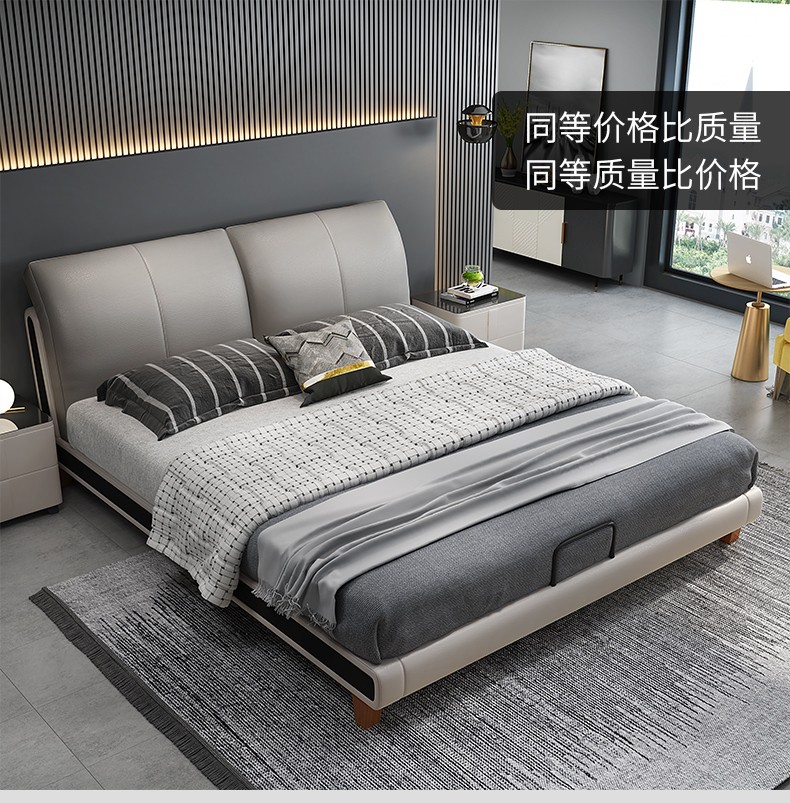 商品名称:狄普床现代简约真皮床1.8米双人床卧室床北欧主卧皮艺床成套家具