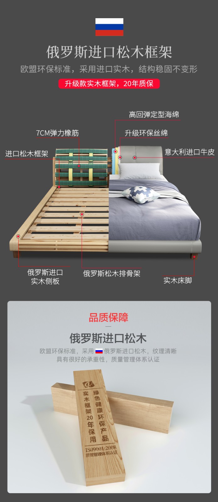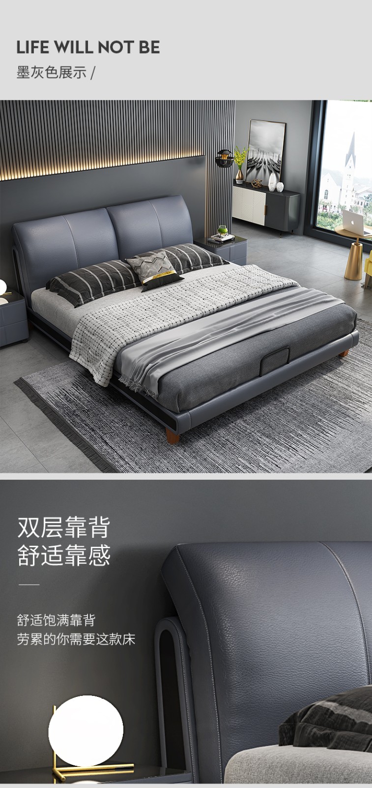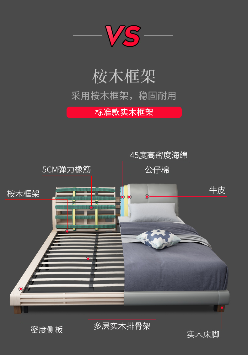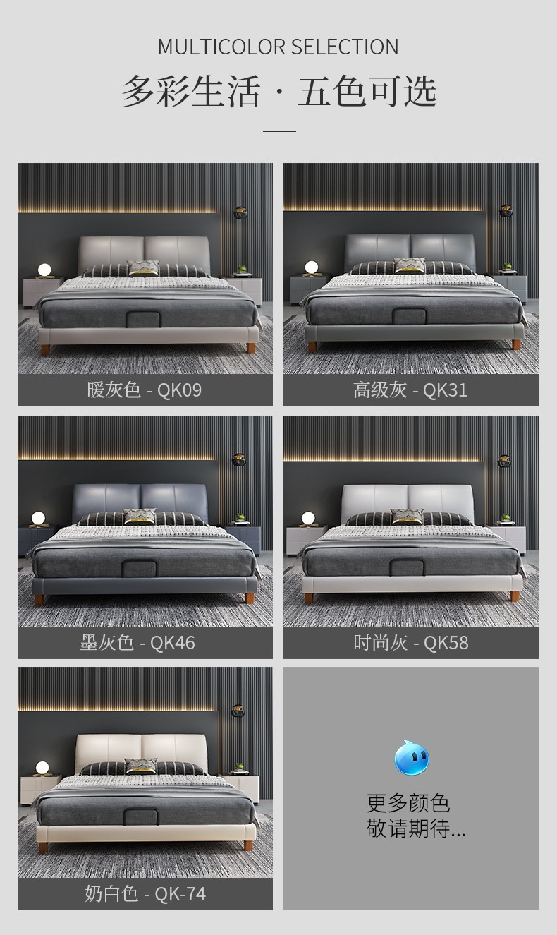 商品名称:狄普床现代简约真皮床1.8米双人床卧室床北欧主卧皮艺床成套家具