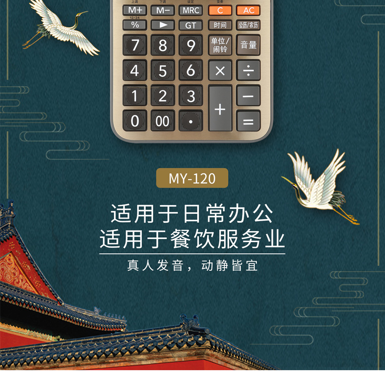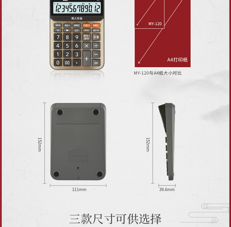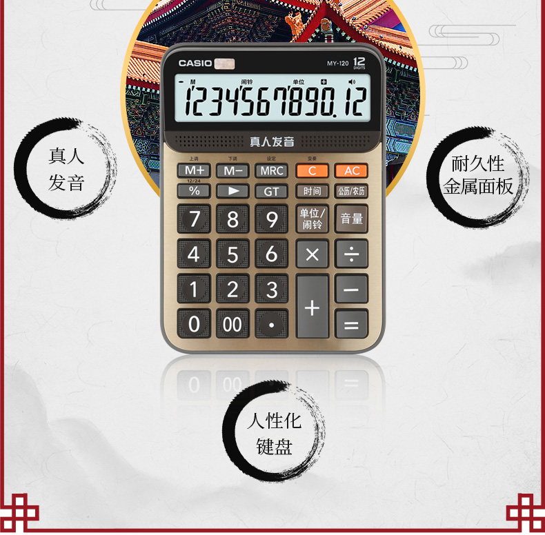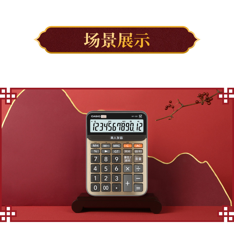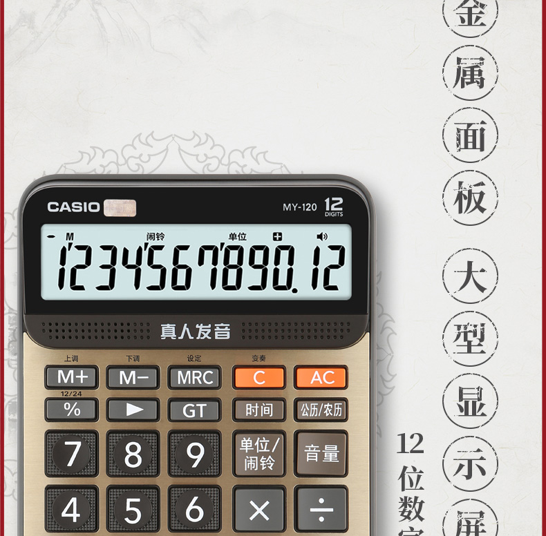 商品名称:CASIO卡西欧 MY-120 真人发音计算器 小号 办公台式语音机 土豪金
