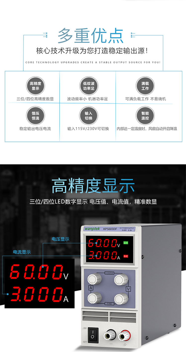 wanptek大功率KPS6030D直流稳压电源100V60V30V30A20A10A可调电源