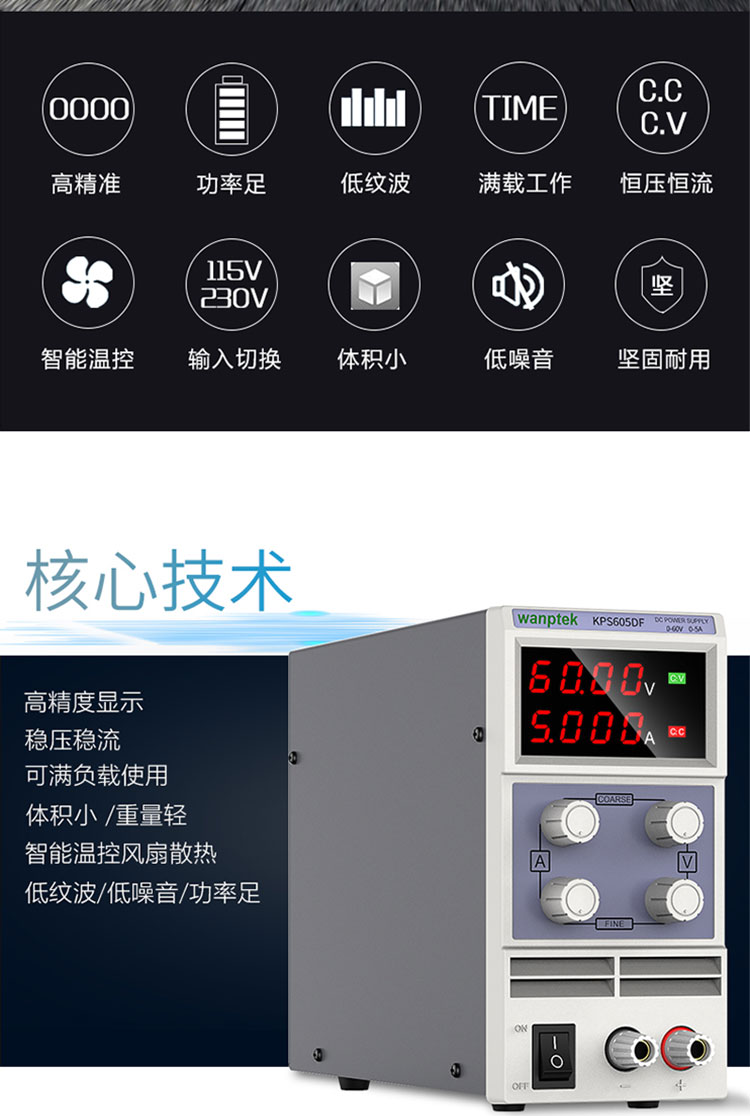 商品名称:wanptek固测可调直流稳压电源KPS305D KPS1510D电镀老化开关电源