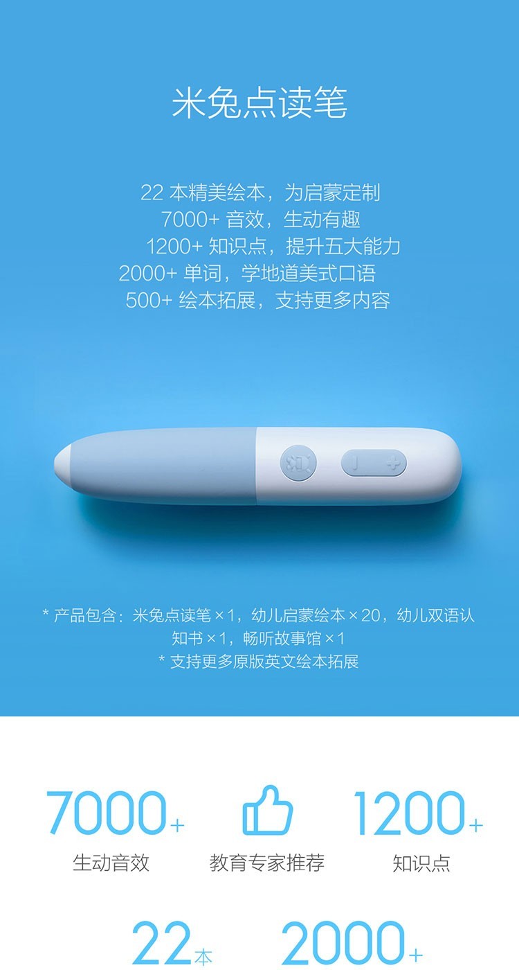 商品名称:小米(MI) 米兔点读笔幼儿童早教机英语学习讲故事点读机0-3-6岁玩具带绘本 米兔点读笔-蓝色