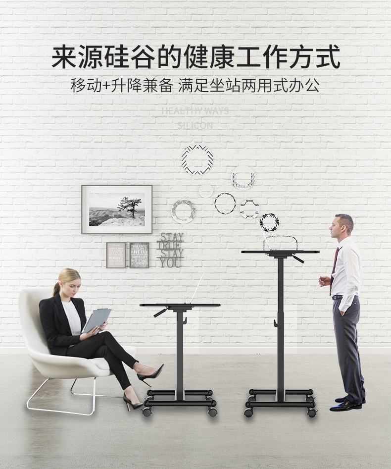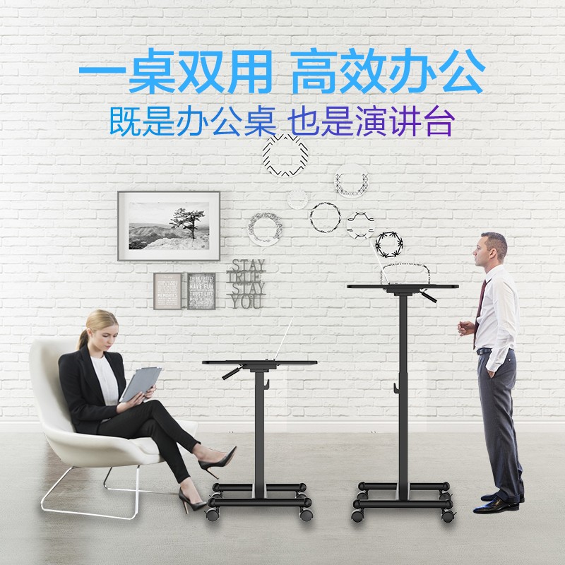 商品名称:乐歌站立式升降懒人移动桌电脑升降桌会议演讲桌站立式家具办公桌