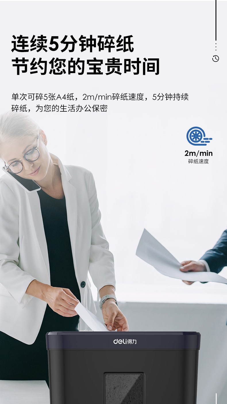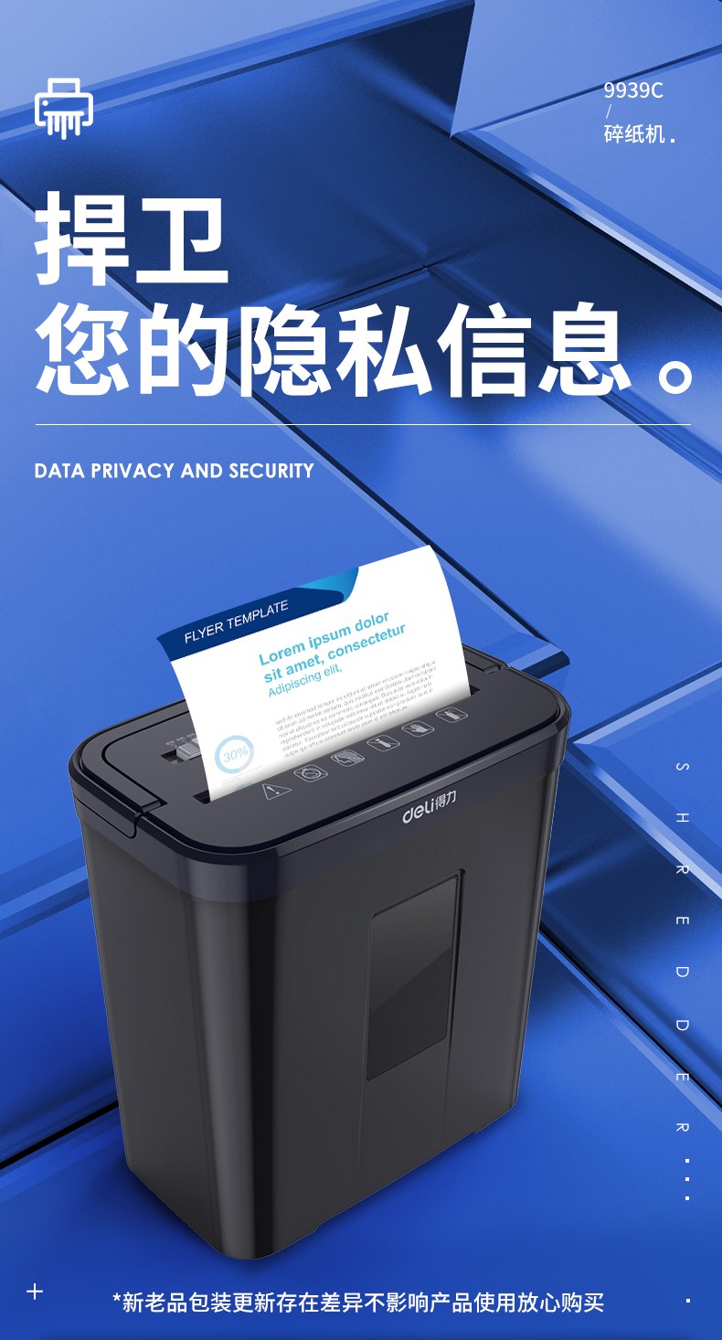 得力9939C碎纸机办公室专用自动小型家用颗粒状电动大功率商用便捷桌面纸张文件迷你粉碎机5级保密神器碾碎机