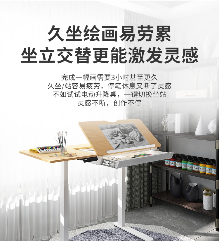 商品名称:乐歌ET6绘画桌升降桌美术画板制图绘图桌设计师工作台桌子学习桌