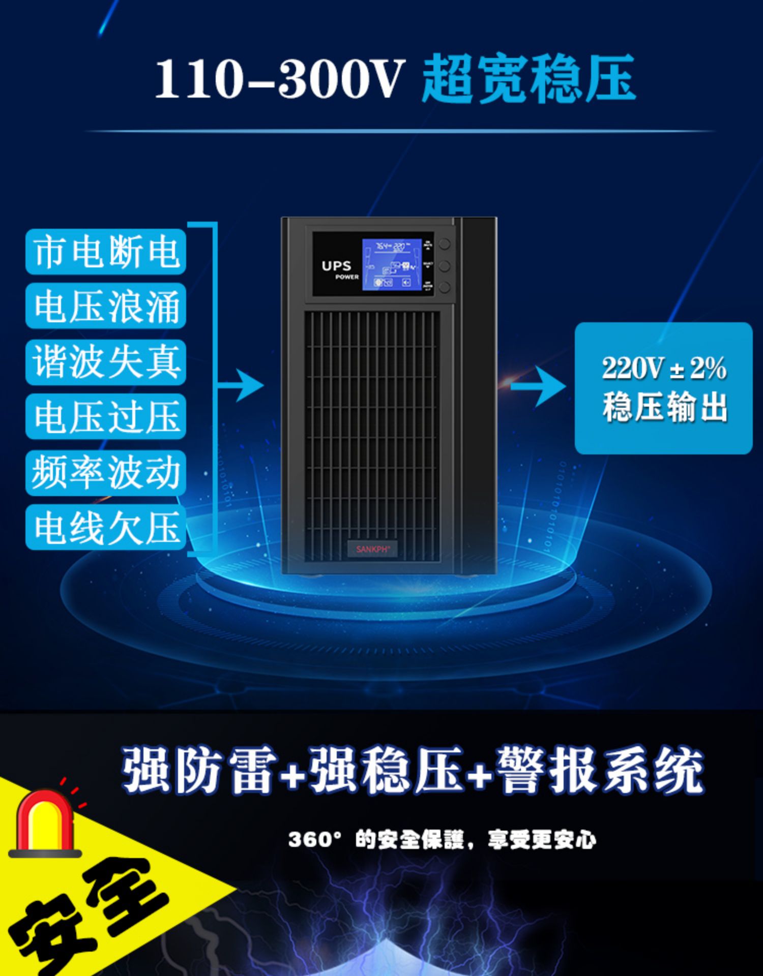 商品名称:山埔UPS不间断电源在线式3KVA/2400w电脑备用稳压220v停电应急C3K